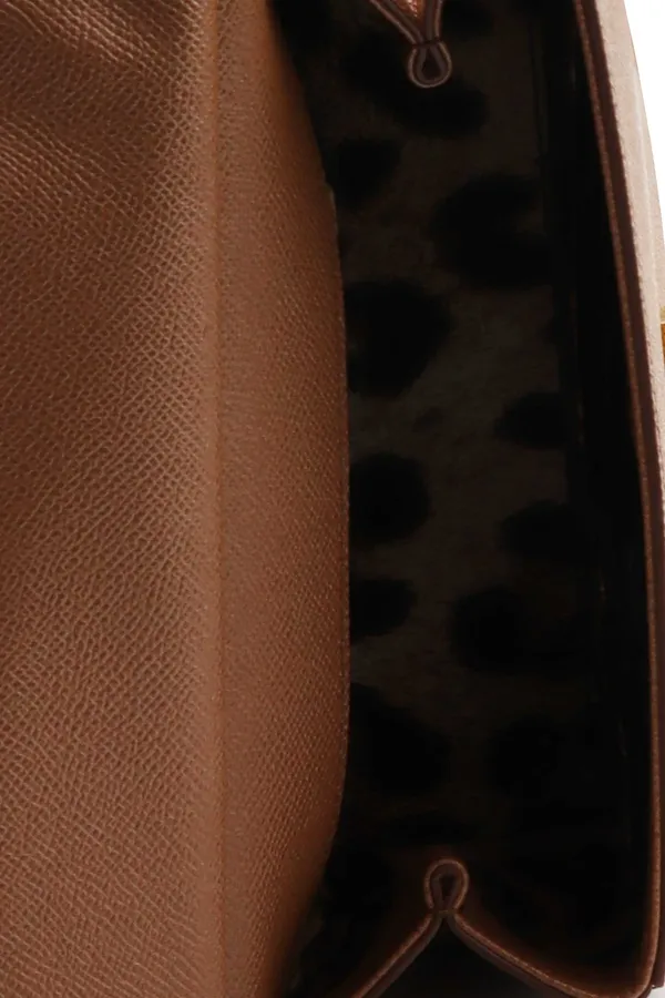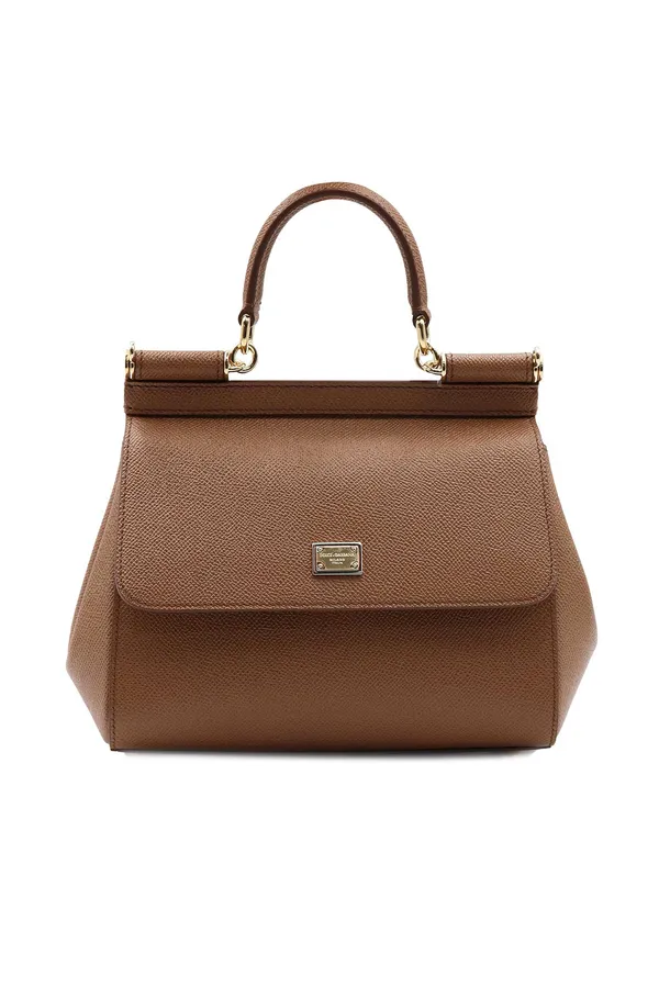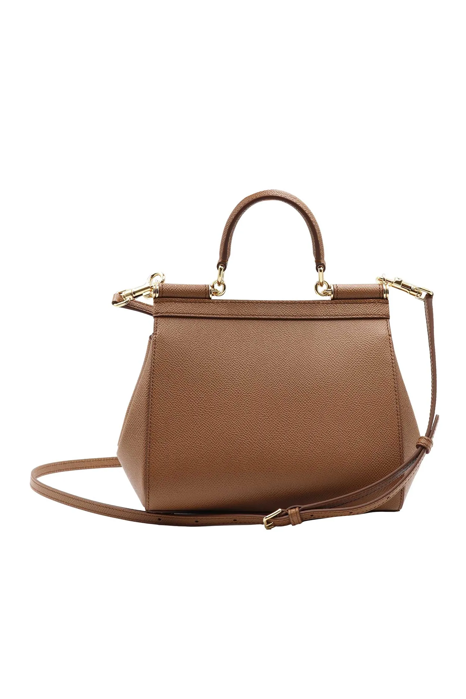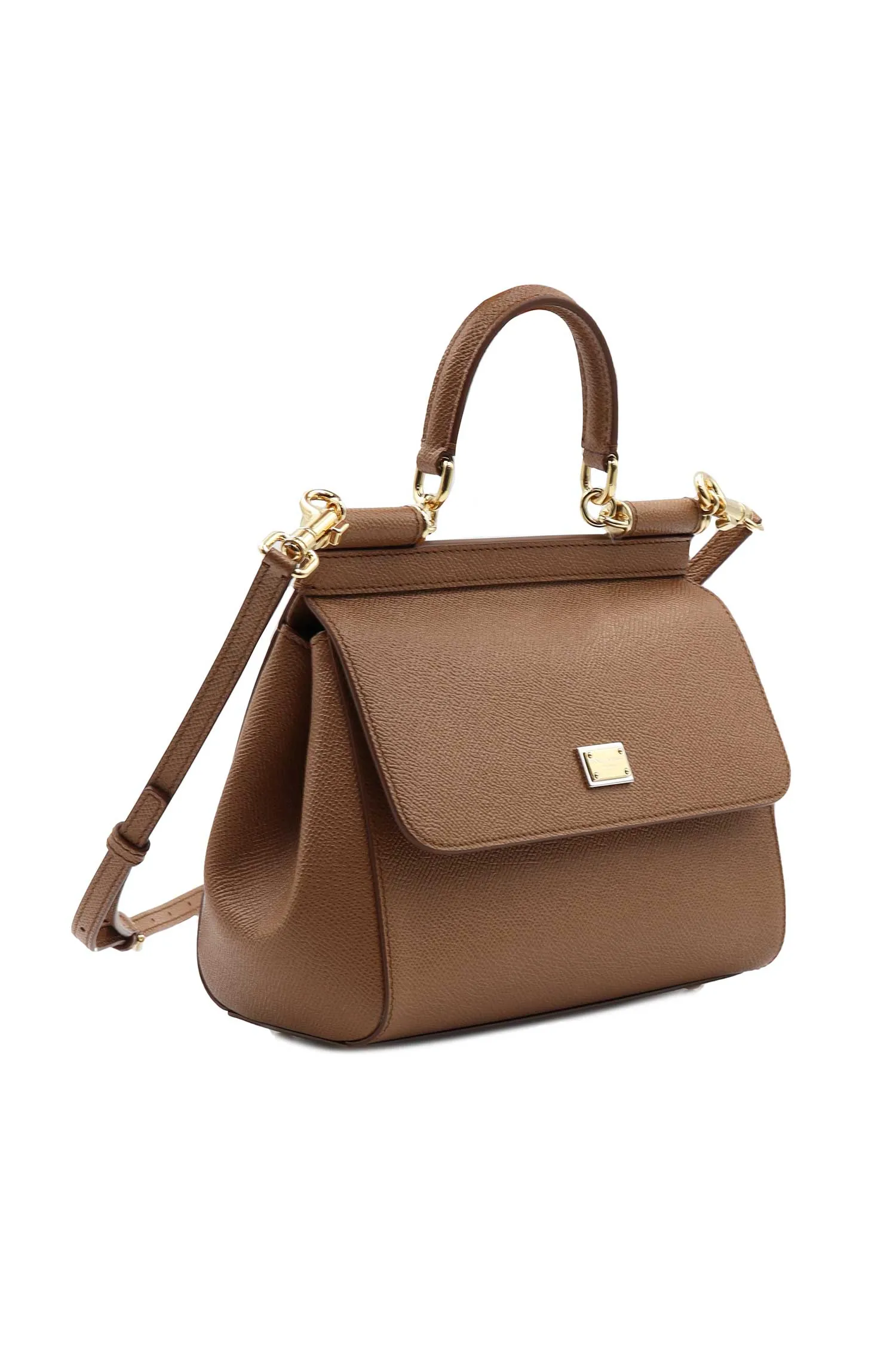 DOLCE&GABBANA СУМКА SICILY MEDIUM КОРИЧНЕВАЯ, ТИСНЁНАЯ КОЖА, ФОРМА САКВОЯЖА, С КЛАПАНОМ, ЗАСТЁЖКА-ФАСТЕКС, РУЧКА, РЕМЕШОК