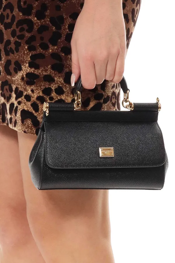 СУМКА SICILY SMALL ЧЁРНАЯ, ТИСНЁНАЯ КОЖА, ФОРМА САКВОЯЖА, С КЛАПАНОМ, ЗАСТЁЖКА-ФАСТЕКС, РУЧКА, РЕМЕШОК