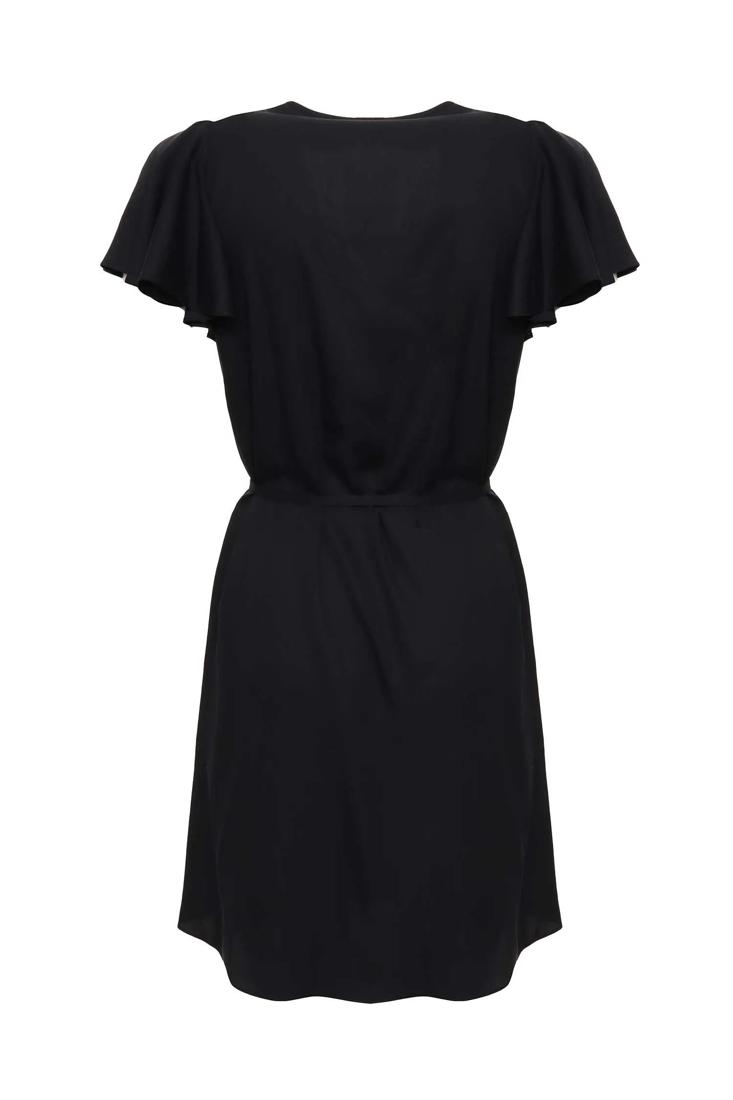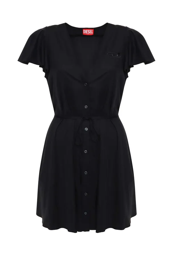 ПЛАТЬЕ-РУБАШКА ЧЁРНОЕ, КОРОТКОЕ, НА ПУГОВИЦАХ, РУКАВА-КРЫЛЫШКИ, ТОНКИЙ ПОЯС