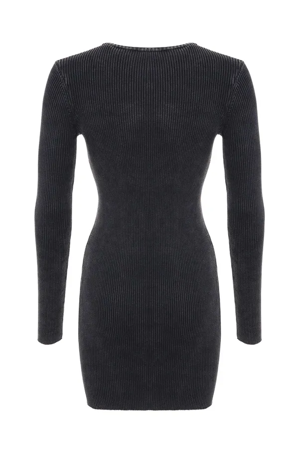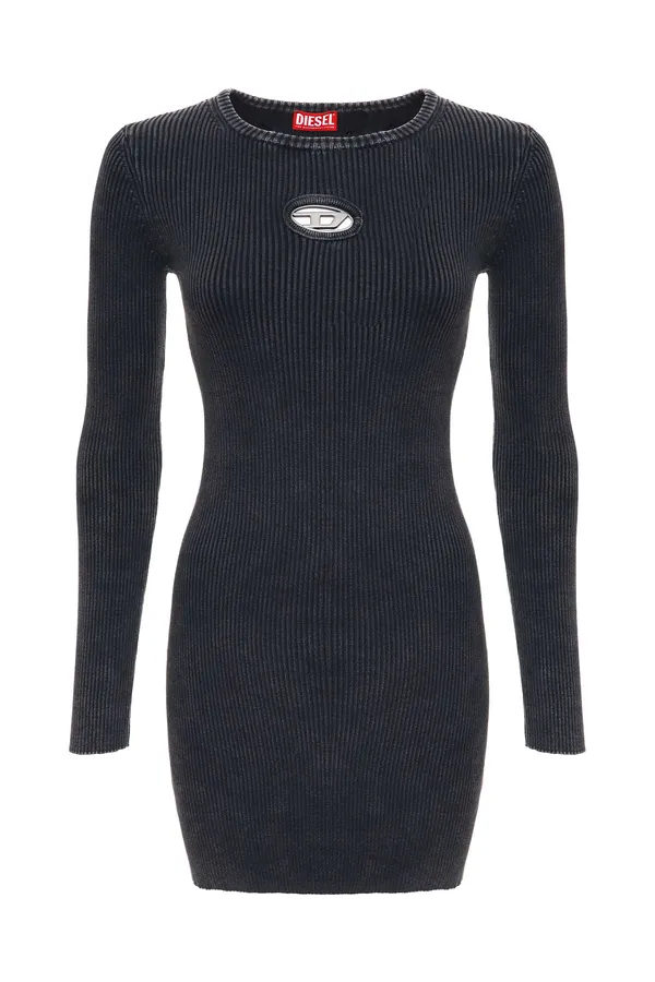 DIESEL ПЛАТЬЕ Т/СЕРОЕ ЛАПША 12GG, ВЫВАРЕННОЕ, КОРОТКОЕ, НА ГРУДИ ПЕРФОРИР.МЕТАЛЛ.ЛОГО, ДЛ/РУК.