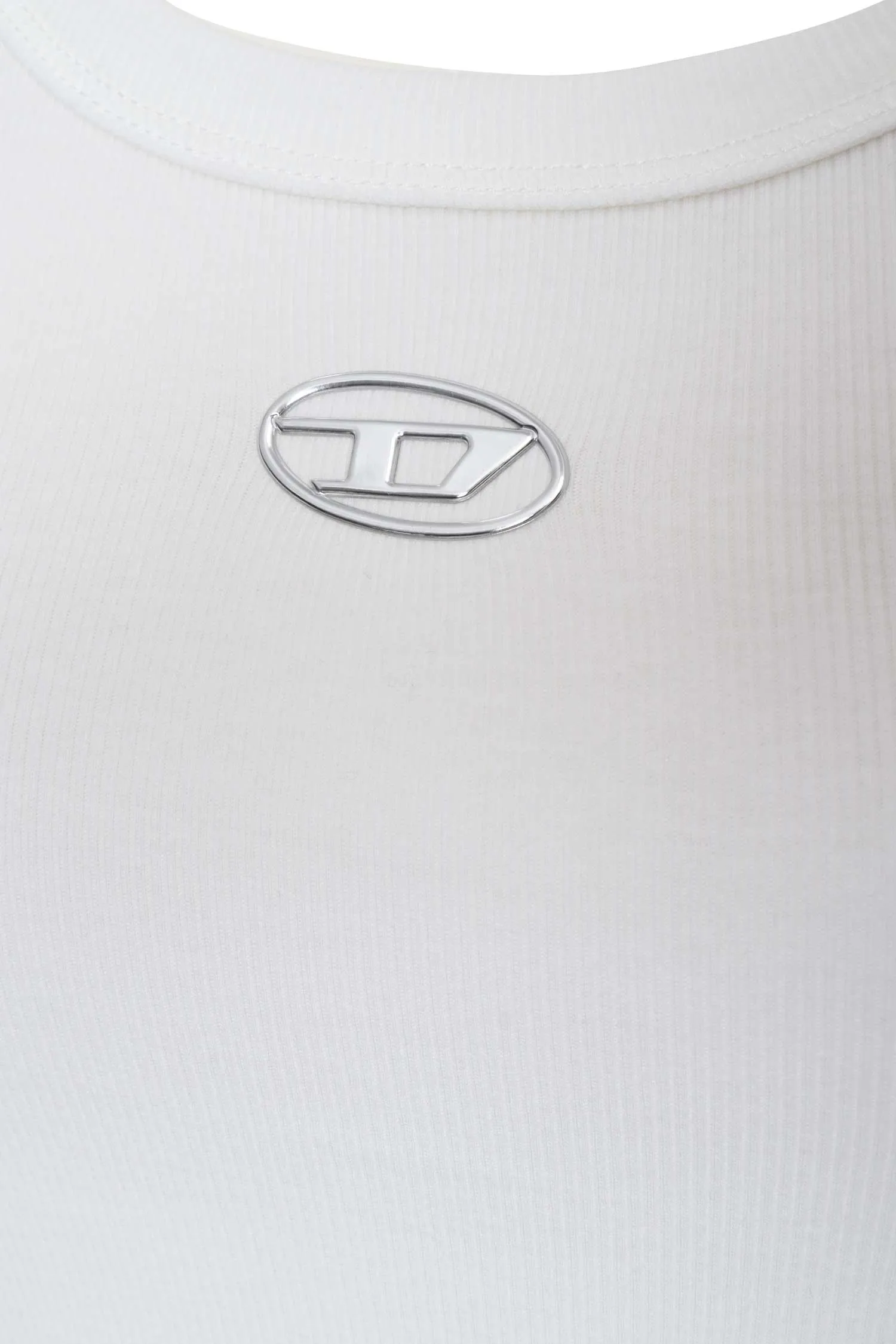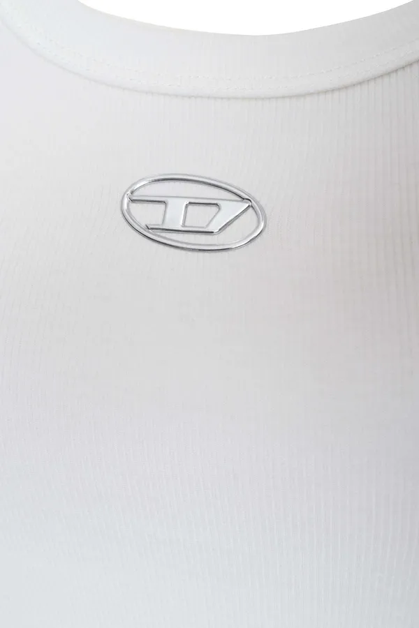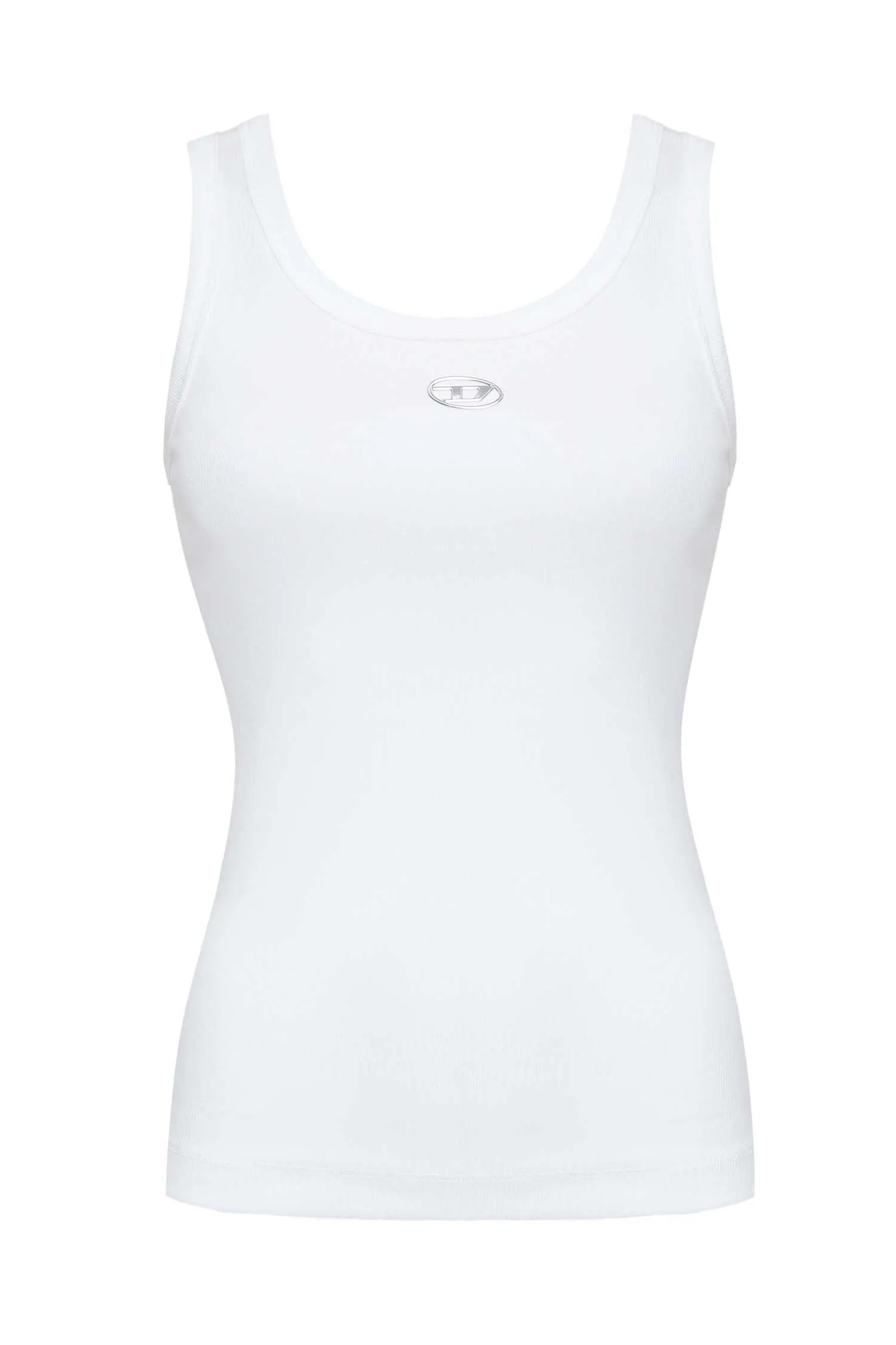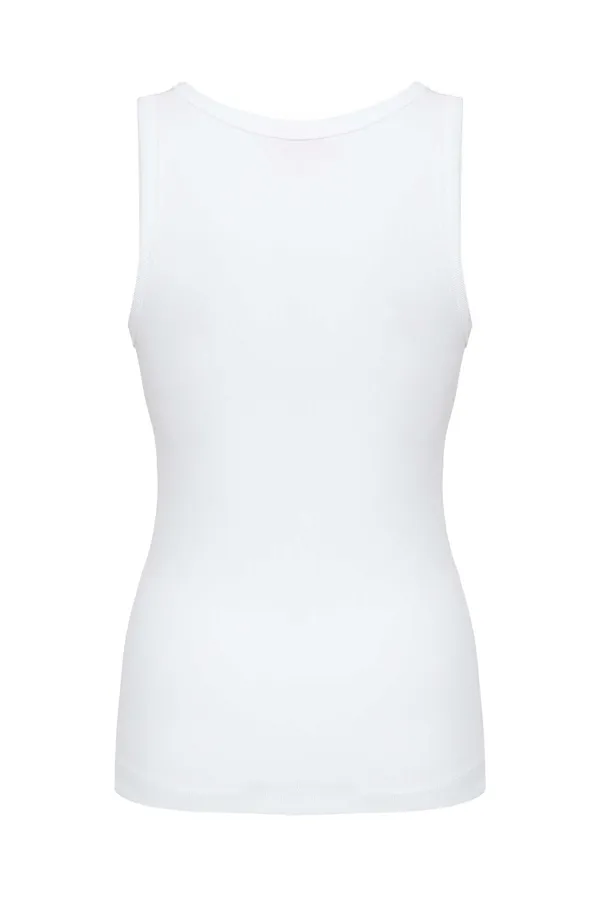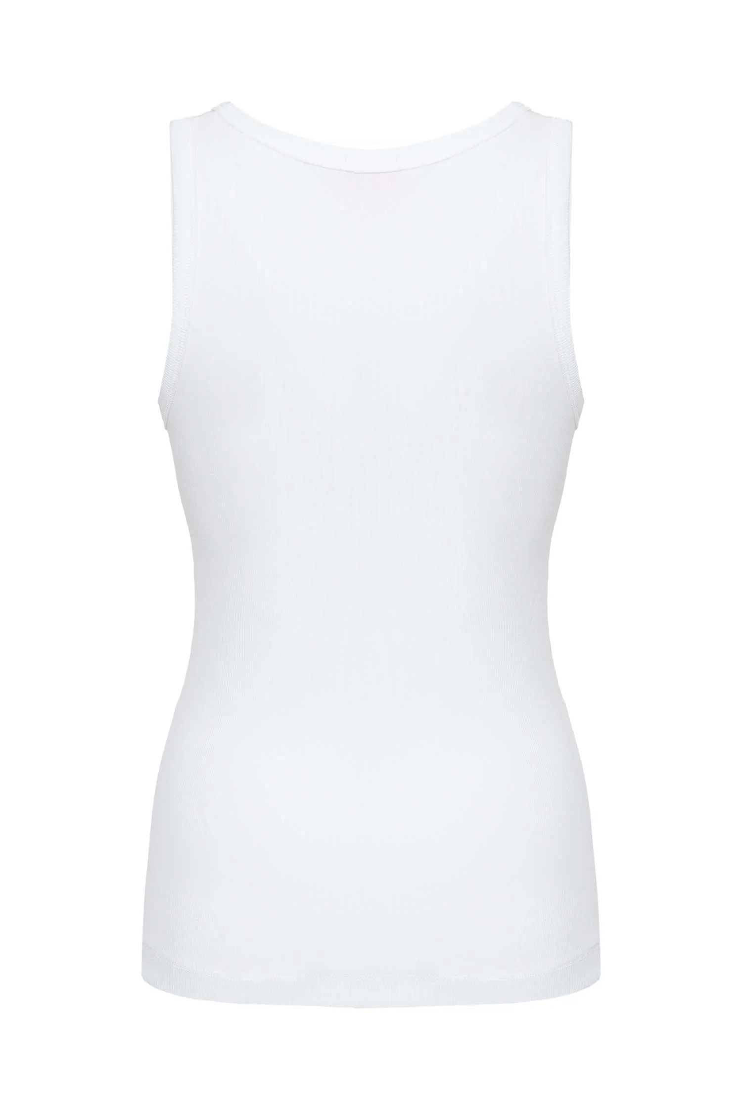МАЙКА M.19908 БЕЛАЯ В РУБЧИК, НА ГРУДИ МАЛЕНЬКОЕ СЕРЕБРИСТОЕ ЛОГО