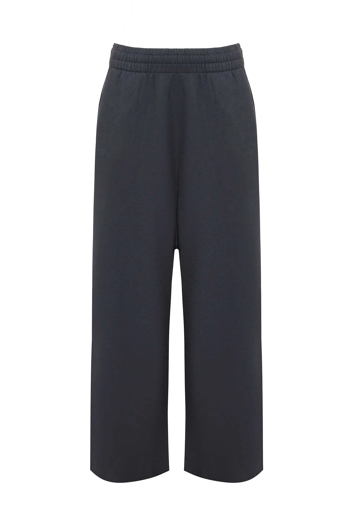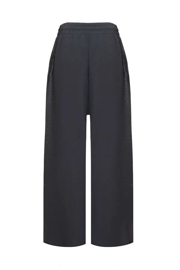 ШТАНЫ Т/СЕРЫЕ С СЕРЕБРИСТЫМ НАПЫЛЕНИЕМ, СВОБОДНЫЕ, ШИРОКИЙ ПОЯС НА КУЛИСКЕ