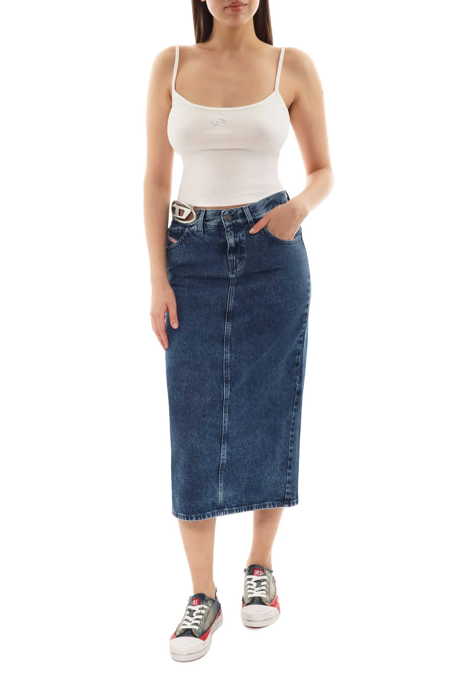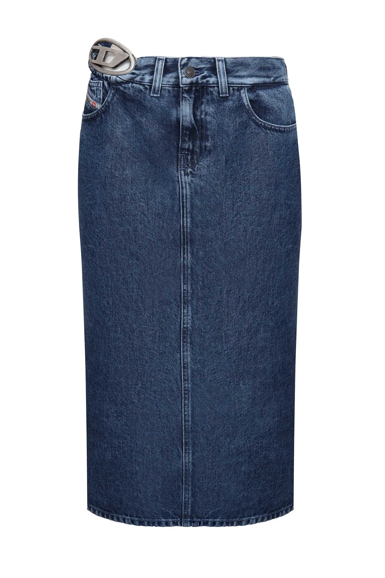 DIESEL ЮБКА СИНЯЯ, ДЖИНСОВАЯ, ДЛИННАЯ, НА ПОЯСЕ КРУПНОЕ МЕТАЛЛ.ЛОГО, СЗАДИ РАЗРЕЗ