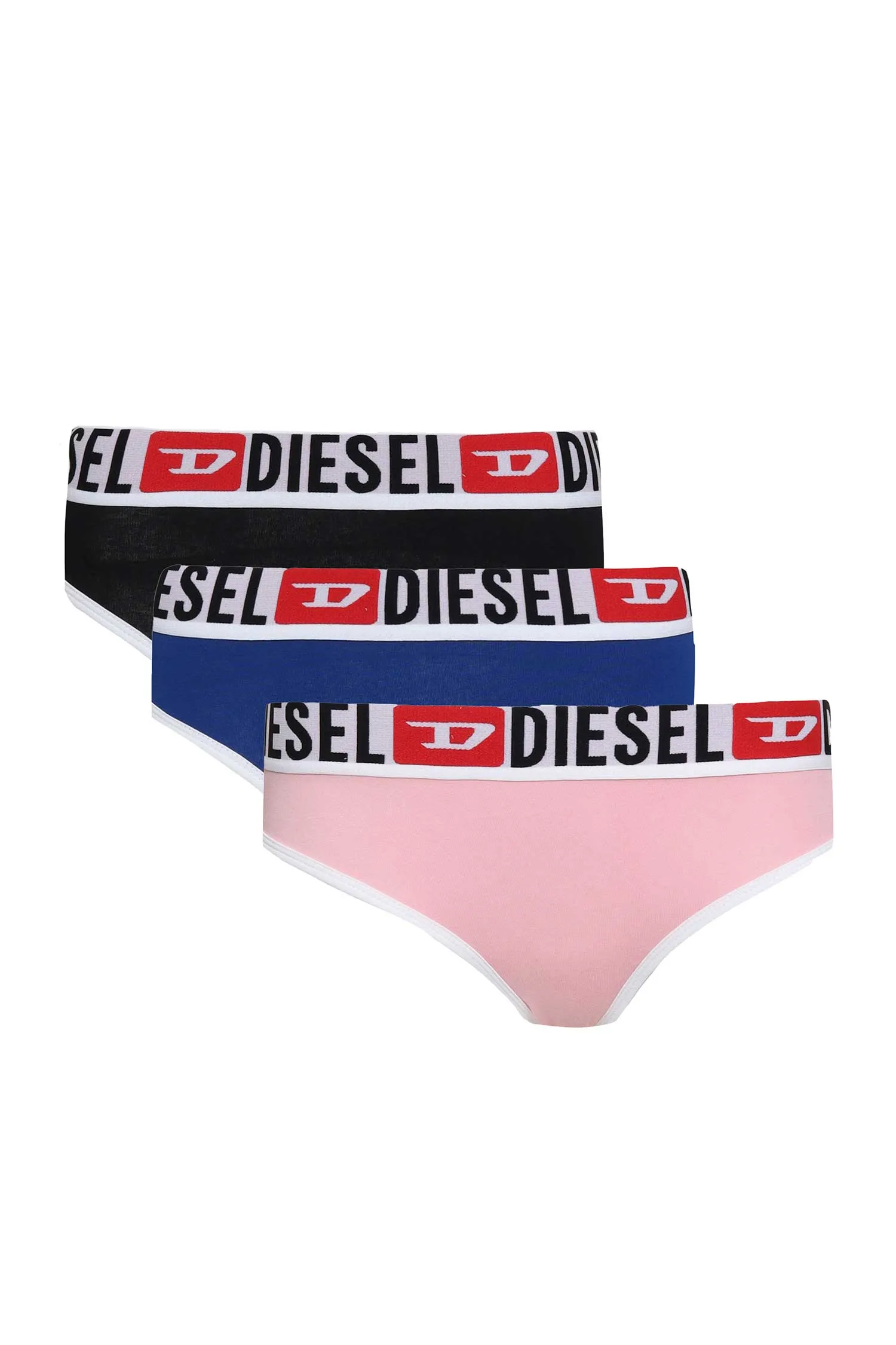 DIESEL КОМПЛЕКТ ИЗ 3-Х ТРУСОВ-СТРИНГОВ РОЗОВЫЙ/ЧЁРНЫЙ/СИНИЙ, БЕЛАЯ РЕЗИНКА В КРАСНО-ЧЁРНОЕ ЛОГО