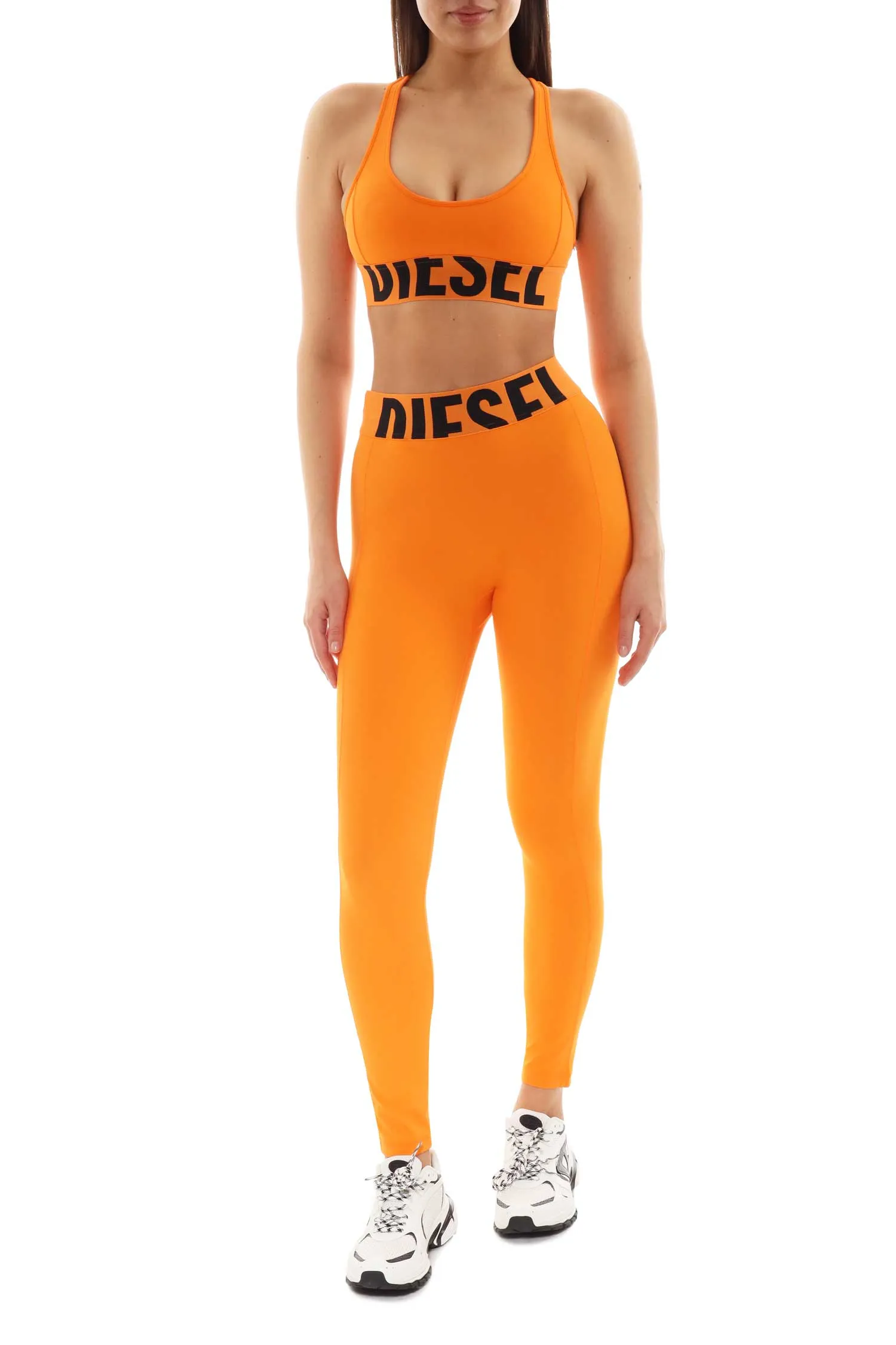 DIESEL КОСТЮМ ОРАНЖЕВЫЙ, ЭЛАСТИЧНЫЙ, ТОП УКОРОЧЕННЫЙ+ЛЕГИНСЫ, НА РЕЗИНКЕ КРУПНАЯ ЧЁРНАЯ ЛОГО-НАДПИСЬ