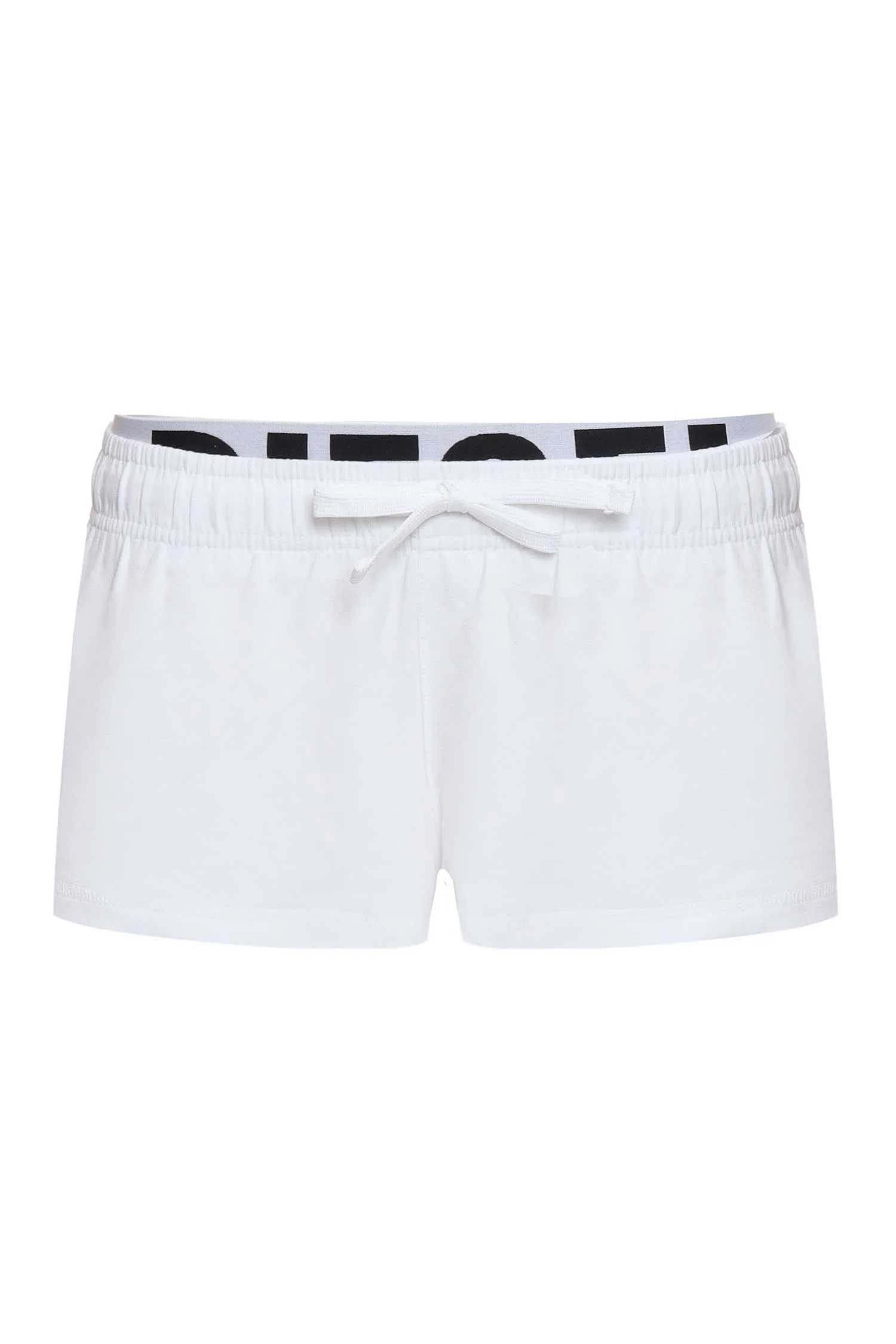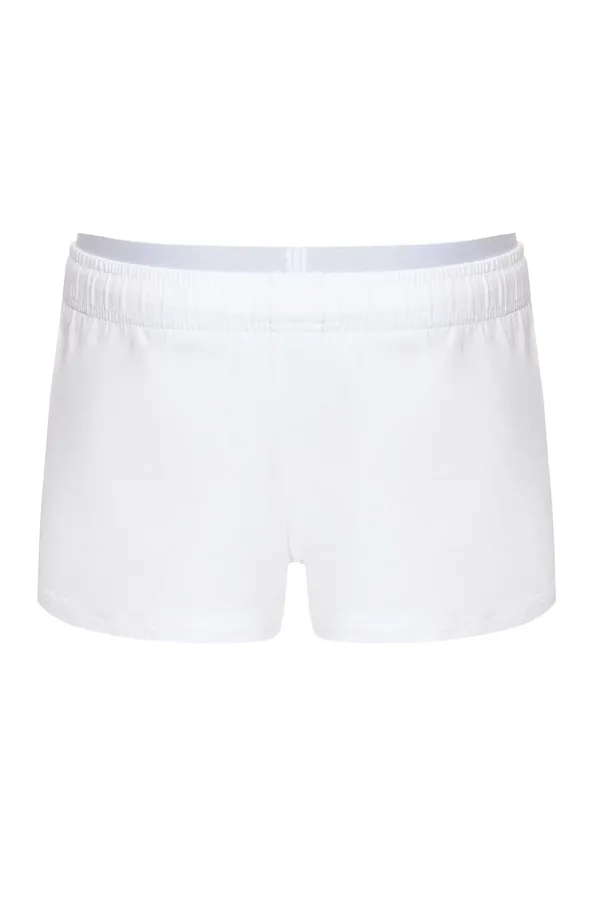 ШОРТЫ БЕЛЫЕ, ТОНКИЕ, КОРОТКИЕ, ДВОЙНОЙ ПОЯС, РЕЗИНКА С ЧЁРНОЙ ЛОГО-НАДПИСЬЮ