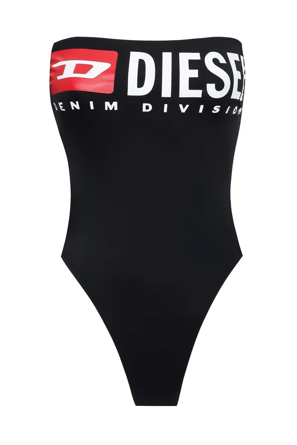 DIESEL КУПАЛЬНИК ЧЁРНЫЙ, СЛИТНЫЙ, КРУПНАЯ БЕЛАЯ ЛОГО-НАДПИСЬ, СЗАДИ ВЫРЕЗ, ОТКРЫТЫЕ ПЛЕЧИ