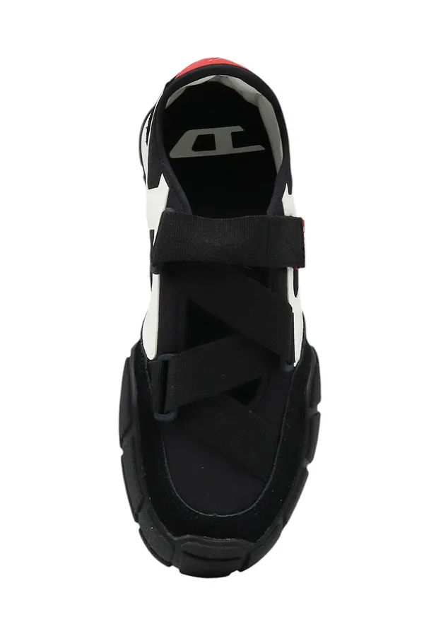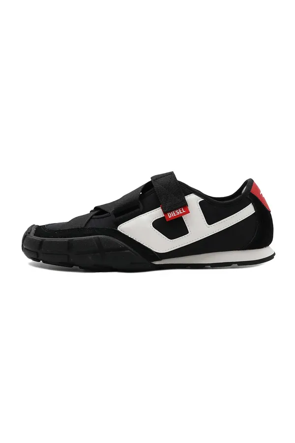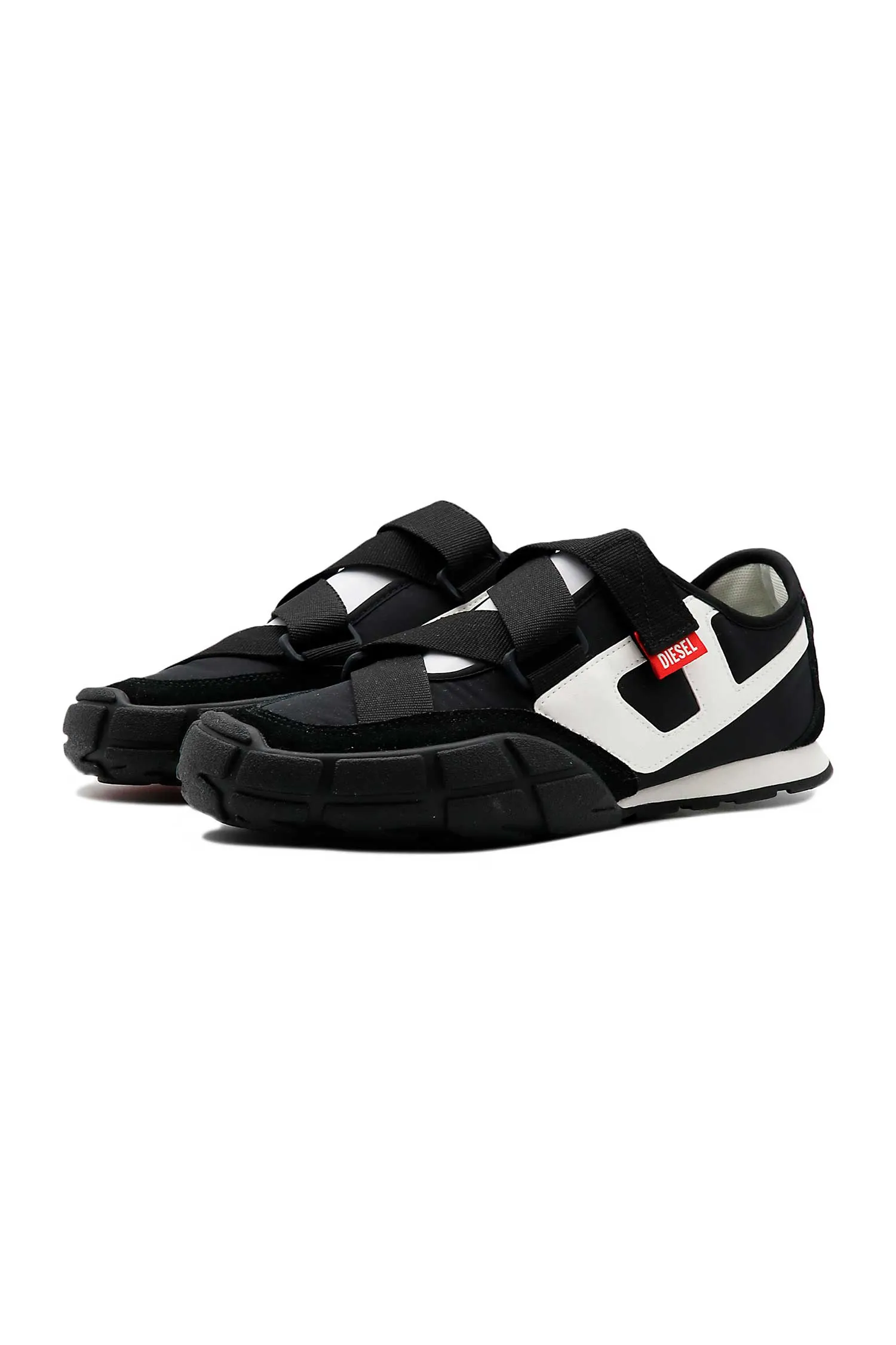 DIESEL КЕДЫ S-PAGODHA SLIP-ON W ЧЁРНО-БЕЛЫЕ, ТЕКСТИЛЬ+ЗАМША, ПЕРЕКРЕЩИВАЮЩИЙСЯ РЕМЕШОК С ЗАСТЕЖКОЙ-ЛИПУЧКОЙ, ПРОРЕЗИНЕН.НОС, К=1,5