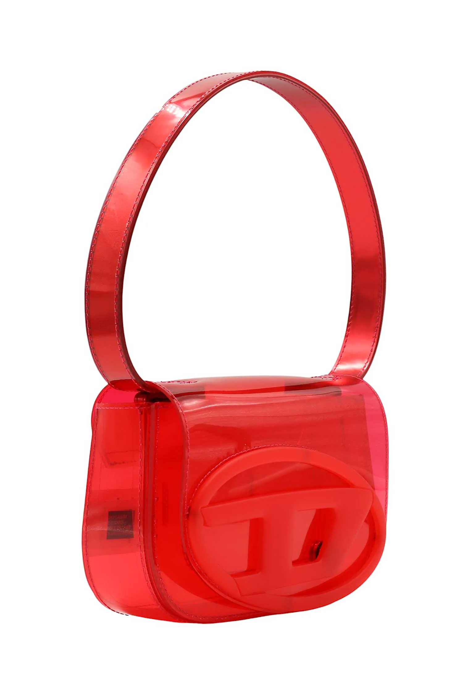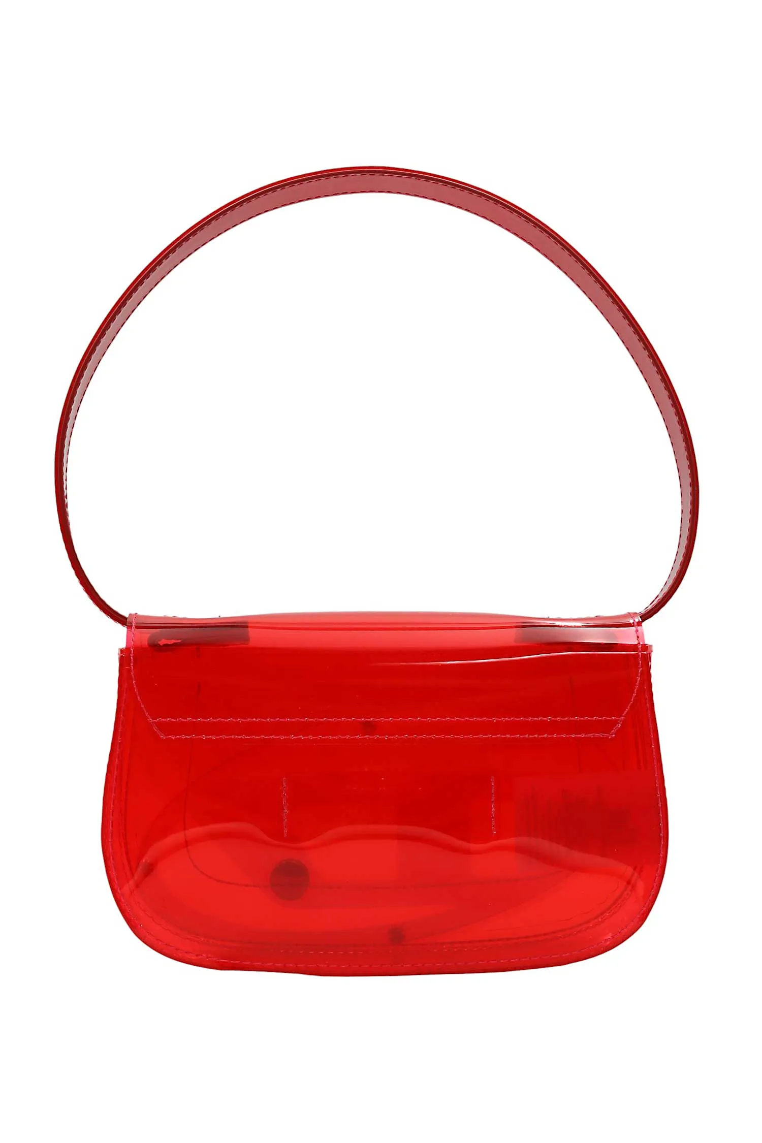 СУМКА 1DR S КРАСНАЯ, ПРОЗРАЧНАЯ, С КЛАПАНОМ, КРУПНОЕ ЛОГО, ЦЕПОЧКА В ТОН, РУЧКА, РЕМЕШОК