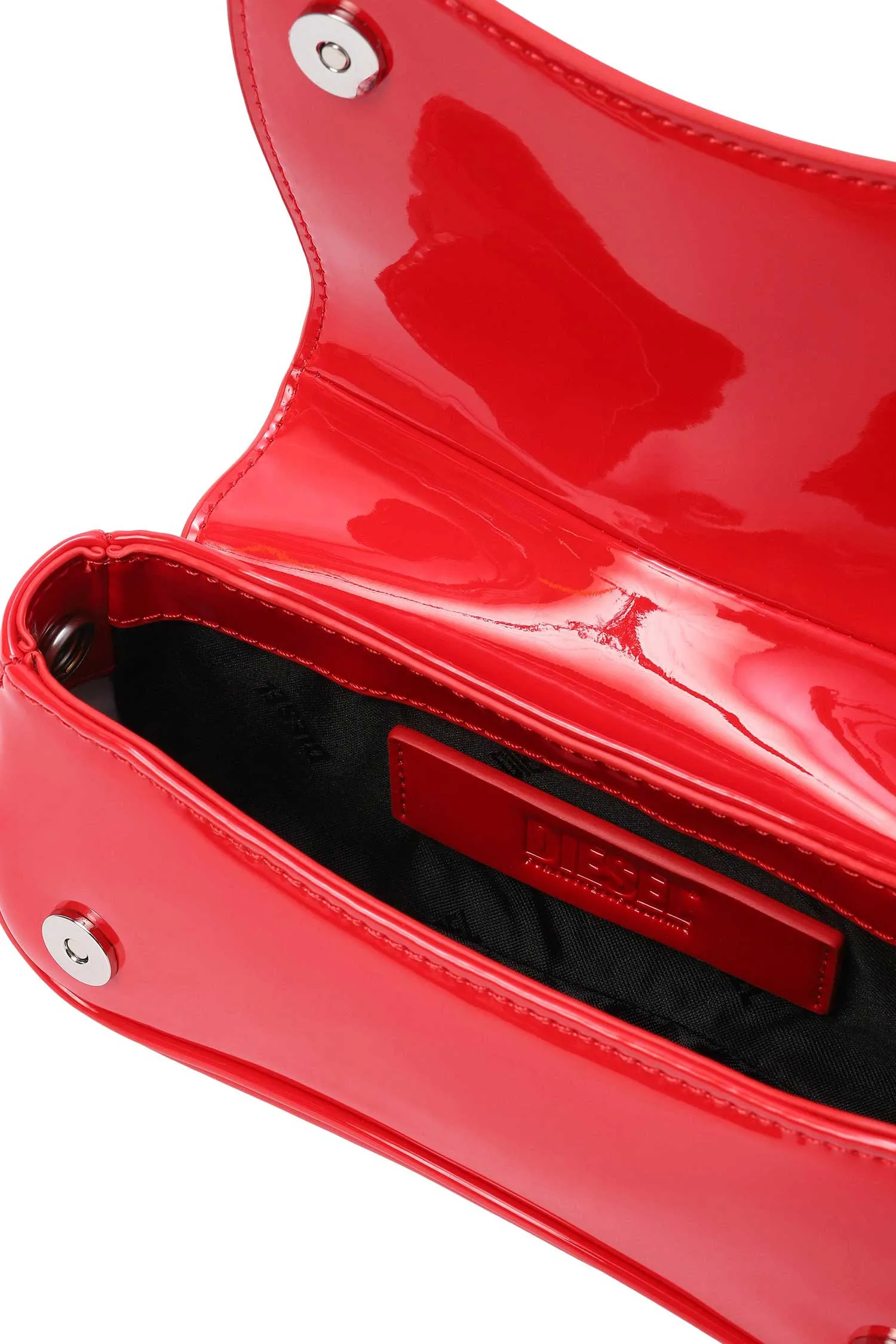 СУМКА PLAY CROSSBODY XS КРАСНАЯ ЛАК, С КЛАПАНОМ, СЪЁМНЫЙ РЕМЕШОК, МЕТАЛЛ.ЛОГО В ТОН