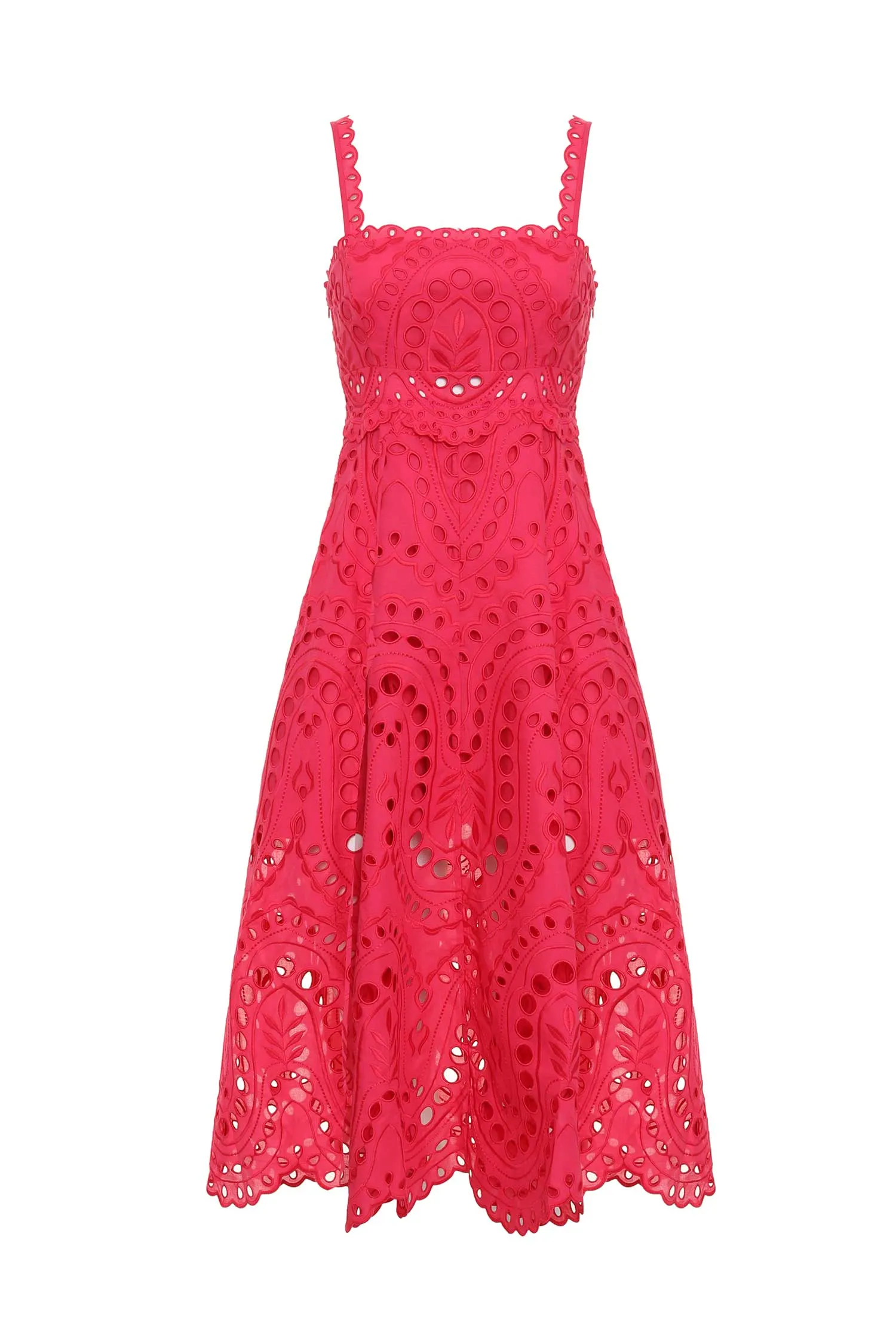 САРАФАН GLIMMER ФУКСИЯ ШИТЬЁ, ДЛИННЫЙ, ТОНКИЕ БРЕТЕЛЬКИ, СЗАДИ РЕЗИНКА