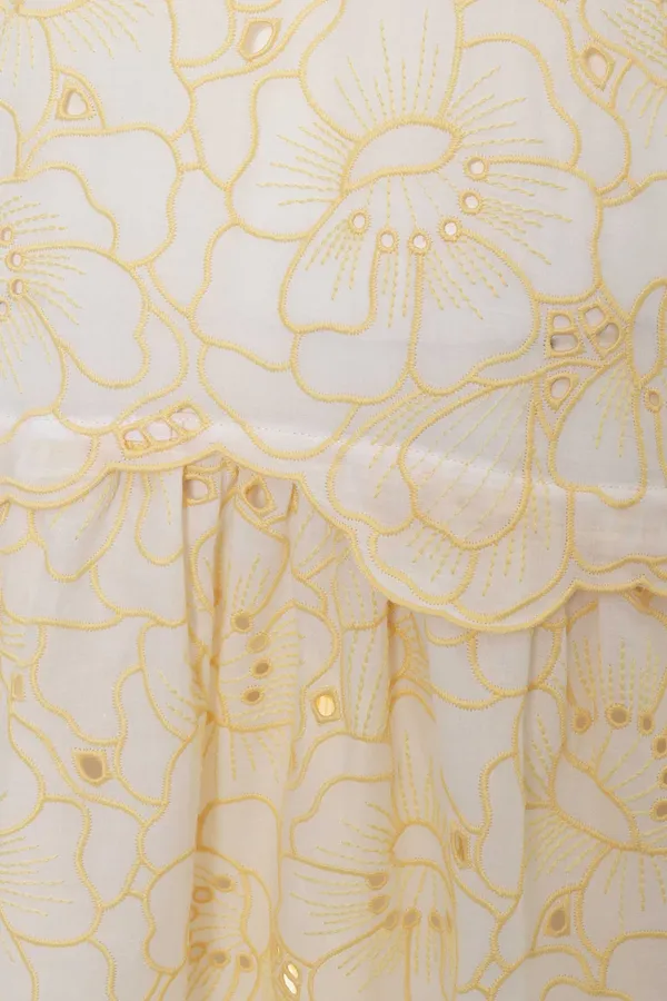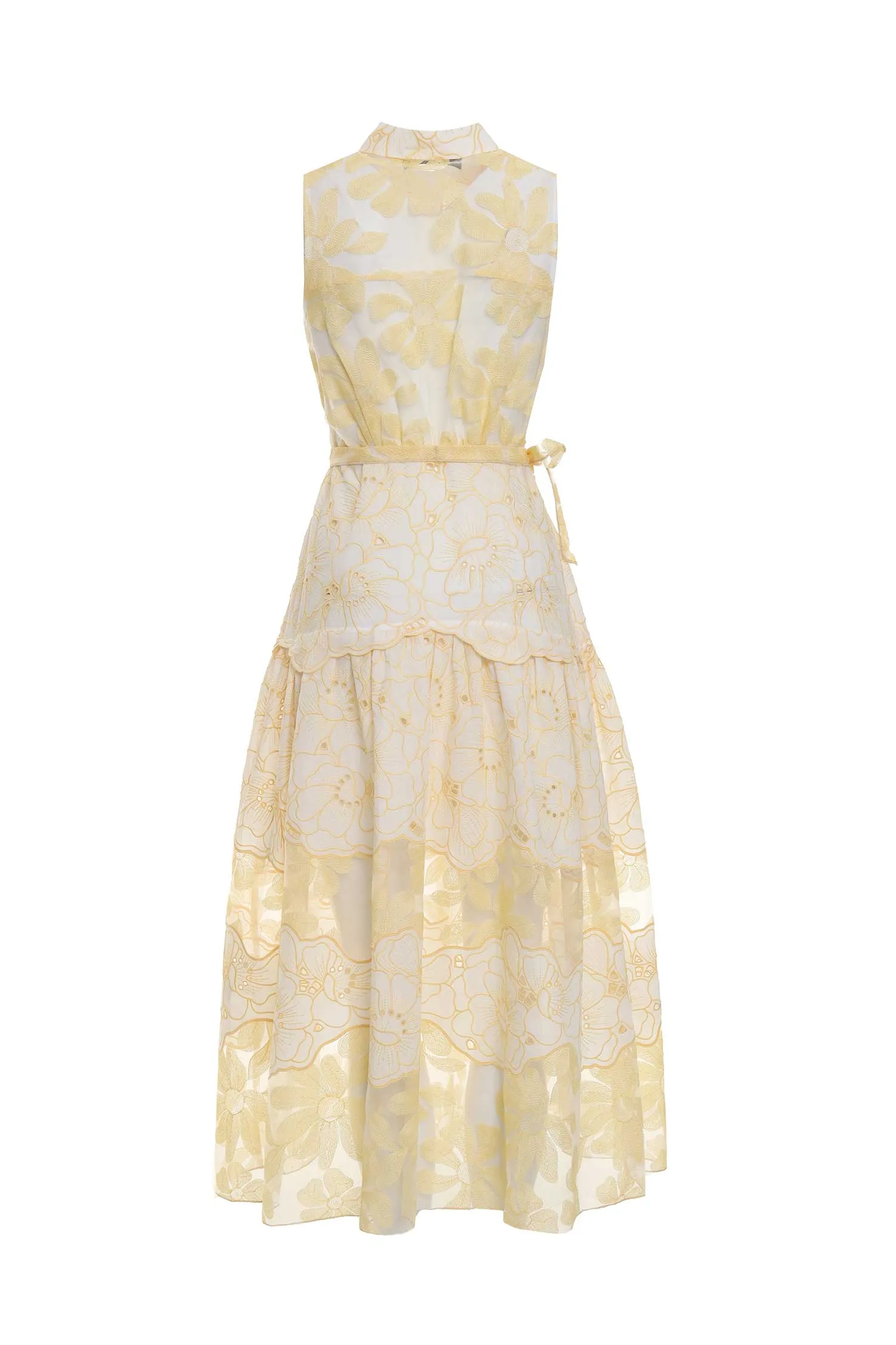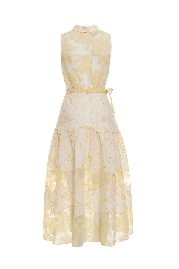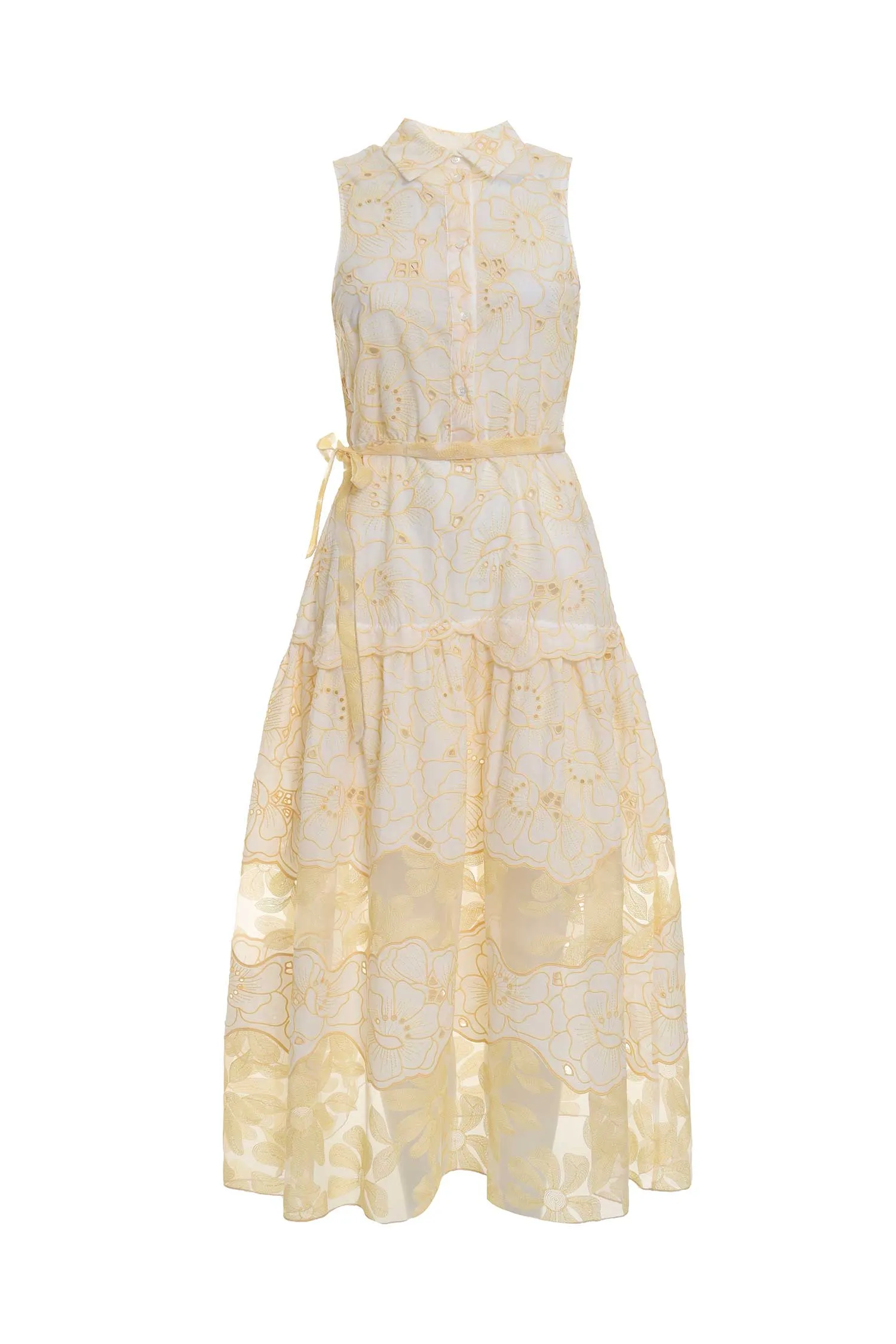 BEATRICE B ПЛАТЬЕ-РУБАШКА БЕЛО-ЖЁЛТОЕ ШИТЬЁ, ЦВЕТОЧНЫЙ ПРИНТ, ДЛИННОЕ, ПОДЪЮБНИК, ПОЯС