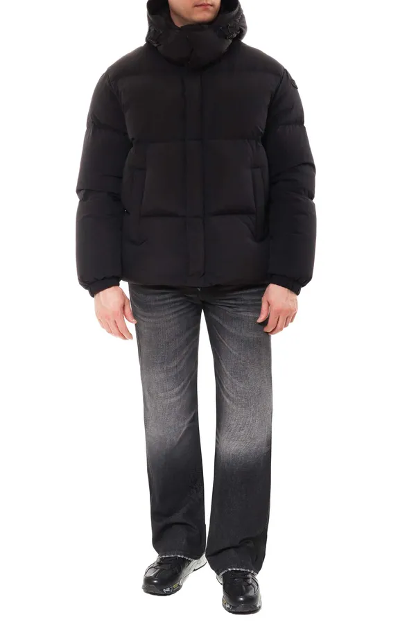 ПУХОВИК M.21764 ЧЁРНЫЙ, КОРОТКИЙ, СНИЗУ НА КУЛИСКЕ, НА РУКАВЕ НАШИВКА-ЛОГО В ТОН, ОТСТЁГИВ.КАПЮШОН, ВОРОТ-СТОЙКА