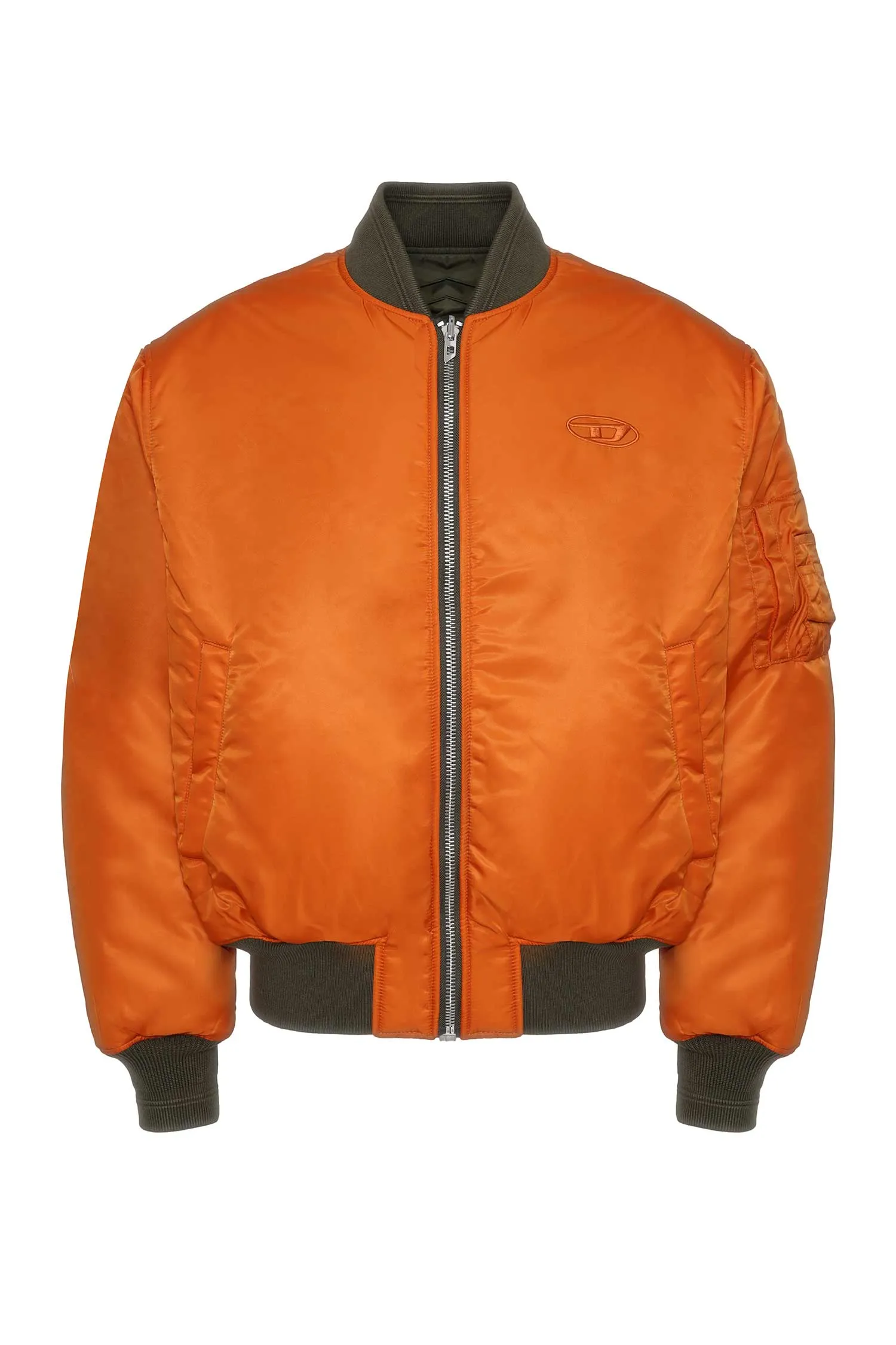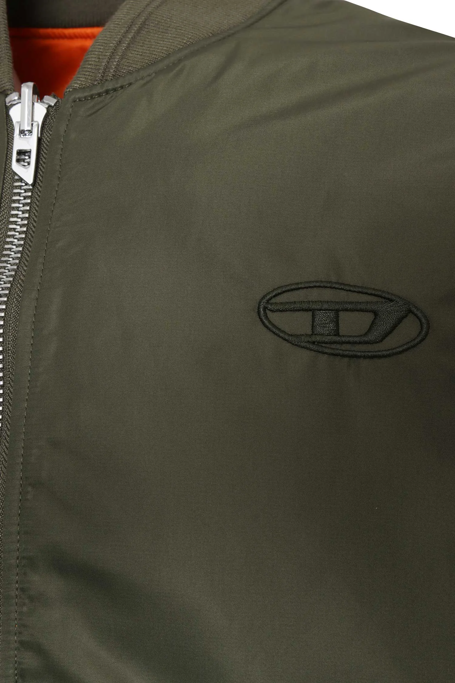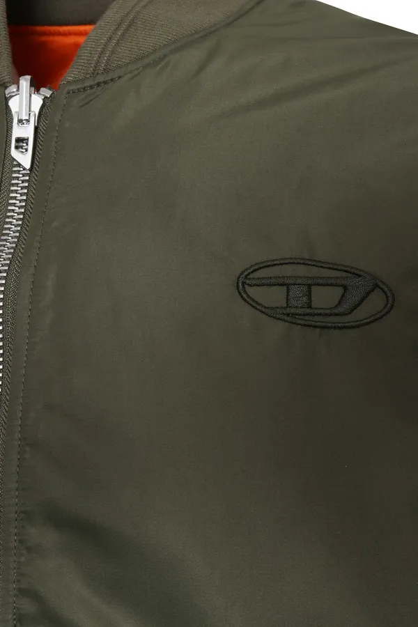 DIESEL БОМБЕР M.20118 ХАКИ/ОРАНЖЕВЫЙ ИЗ НЕЙЛОНА, ДВУСТОРОННИЙ, НА ГРУДИ И СПИНЕ ВЫШИТОЕ ЛОГО В ТОН, ТРИКОТАЖНЫЕ МАНЖЕТЫ