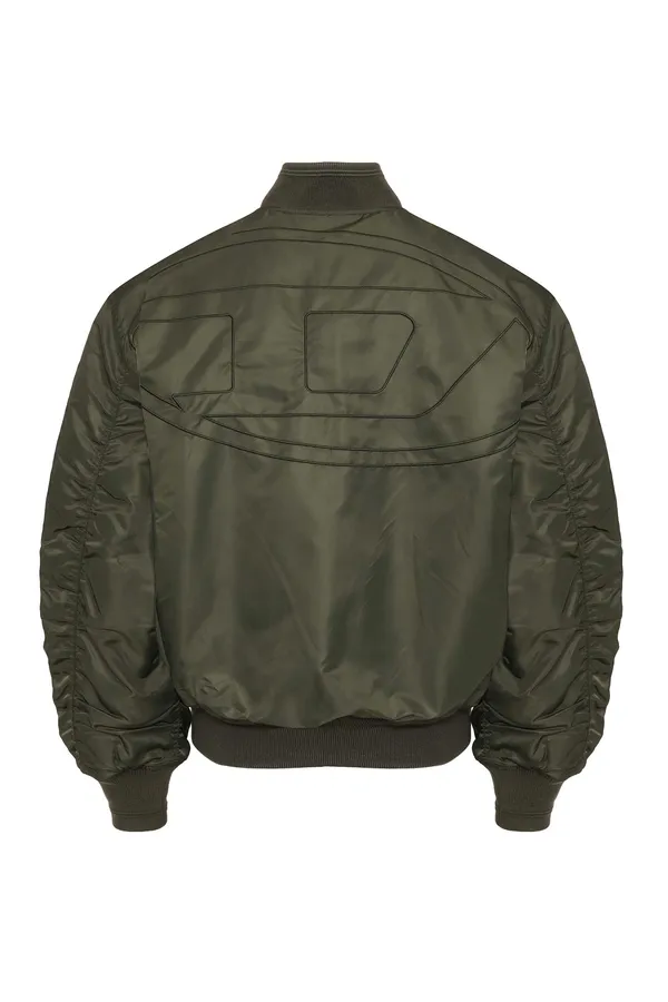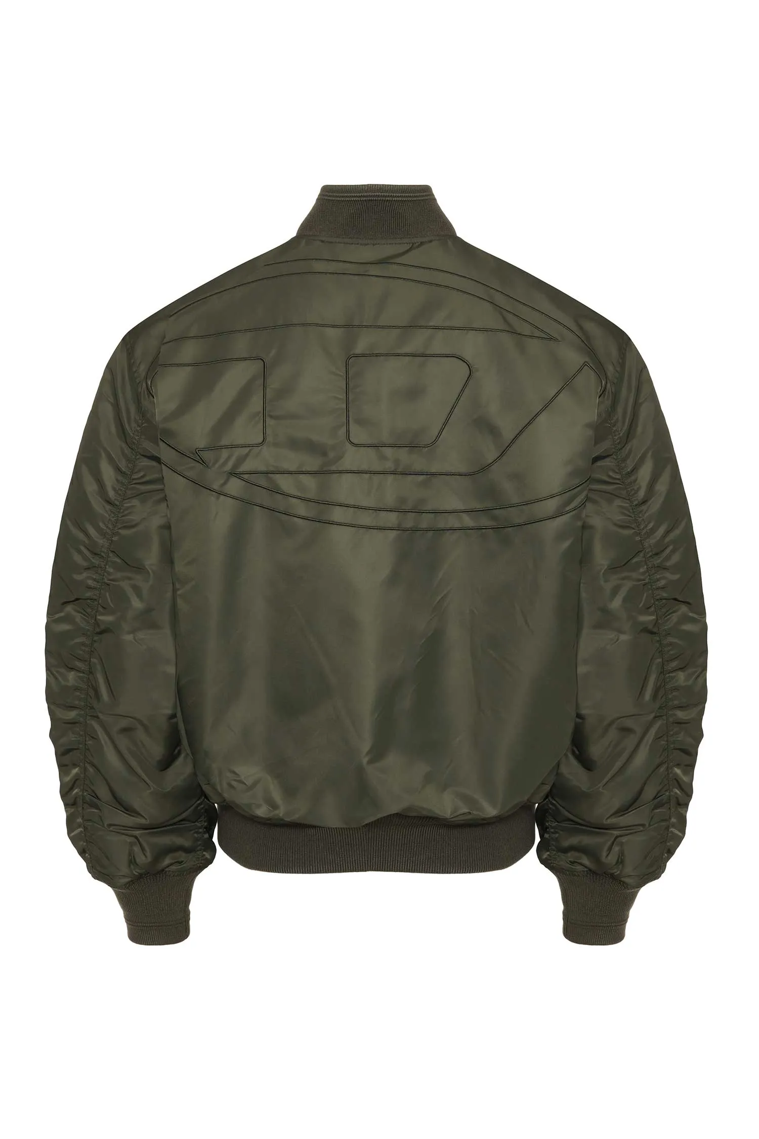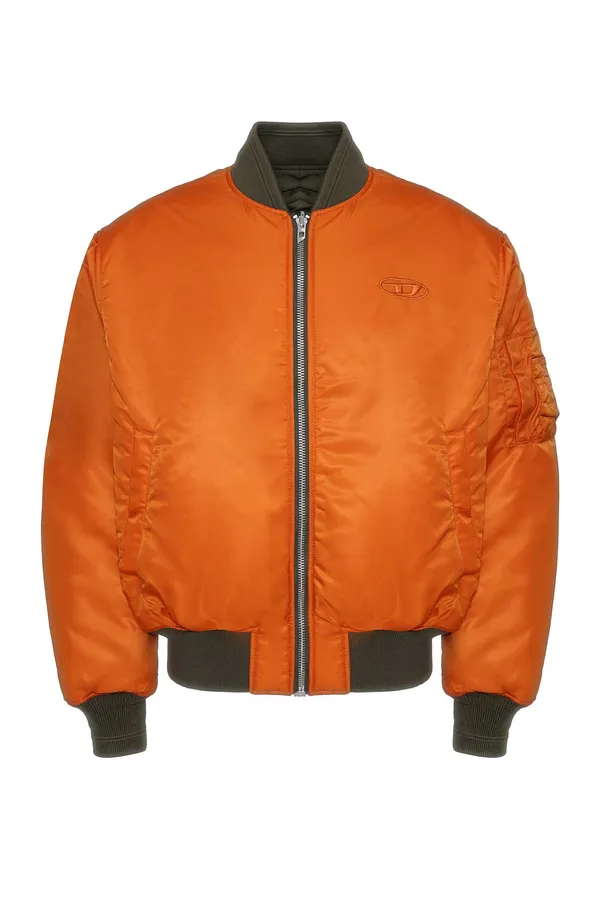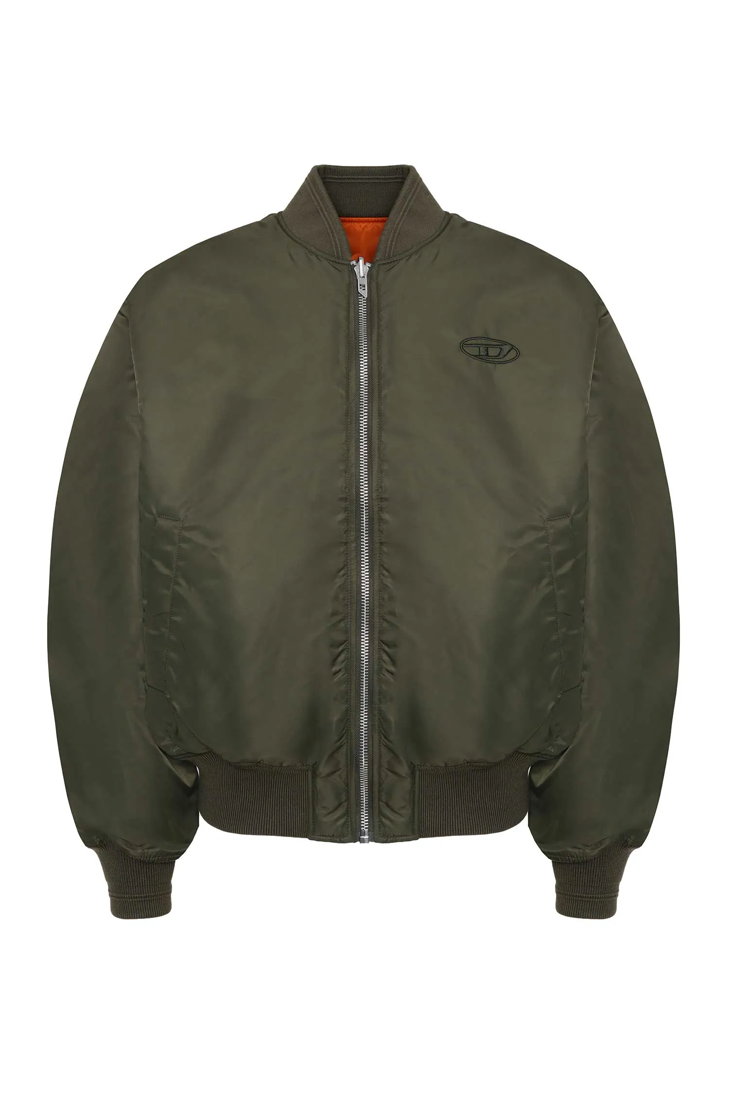 DIESEL БОМБЕР M.20118 ХАКИ/ОРАНЖЕВЫЙ ИЗ НЕЙЛОНА, ДВУСТОРОННИЙ, НА ГРУДИ И СПИНЕ ВЫШИТОЕ ЛОГО В ТОН, ТРИКОТАЖНЫЕ МАНЖЕТЫ