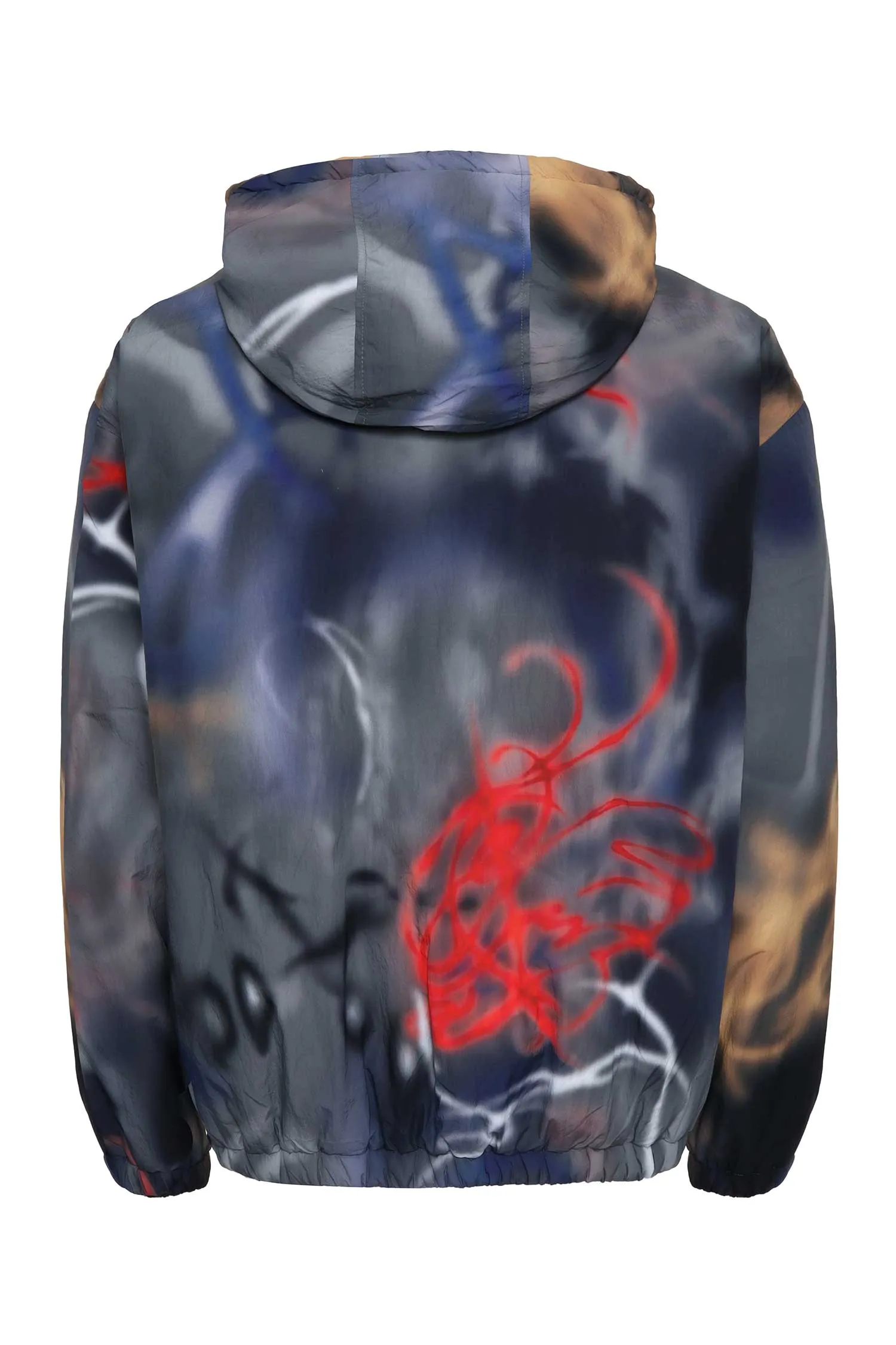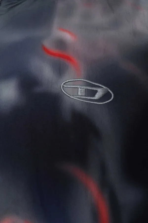 DIESEL КУРТКА СЕРО-КРАСНО-БЕЖЕВАЯ, ПРИНТ ГРАФФИТИ, НА ГРУДИ ВЫШИТОЕ СЕРОЕ ЛОГО, КАПЮШОН НА КУЛИСКЕ