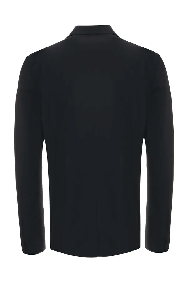 ПИДЖАК ЧЁРНЫЙ, ПРИТАЛЕННЫЙ, БЕЗ ПОДКЛАДКИ, КАРМАНЫ НА МОЛНИИ