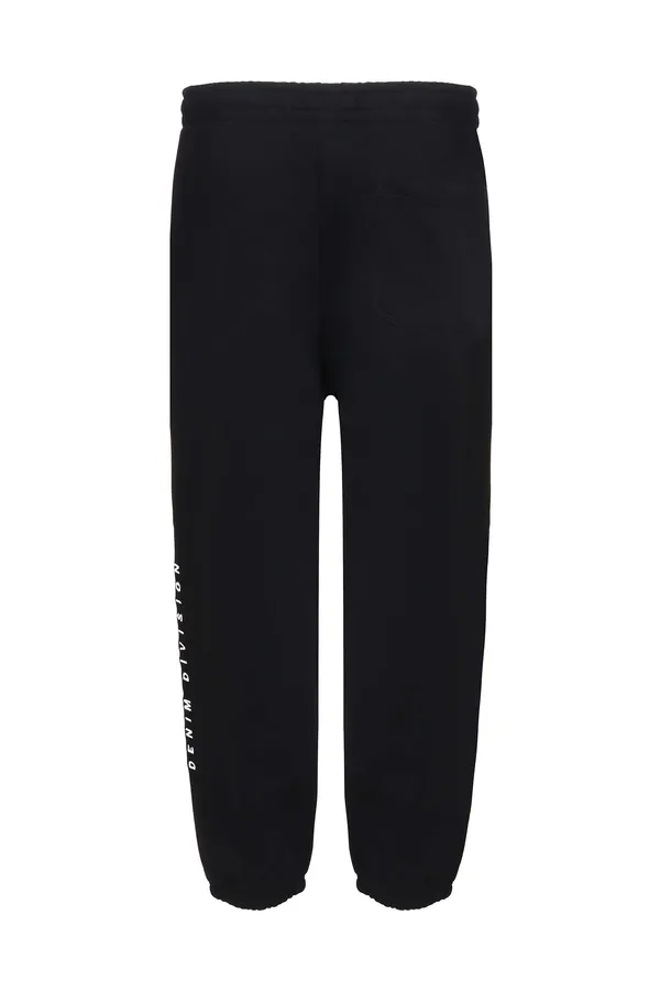 ШТАНЫ ЧЁРНЫЕ НА КУЛИСКЕ, ВЕРТИК.БЕЛАЯ НАШИВКА-ЛОГО, СЗАДИ КАРМАН, СНИЗУ НА РЕЗИНКЕ