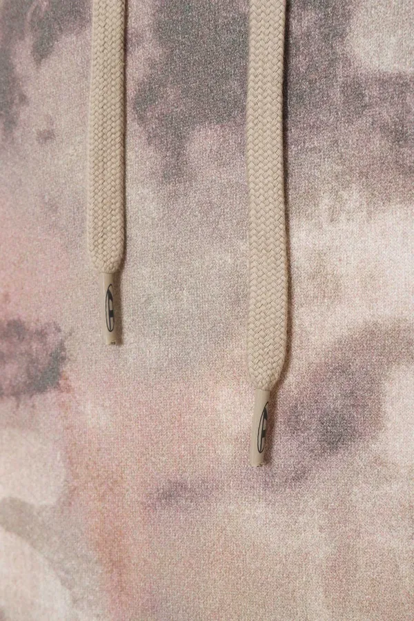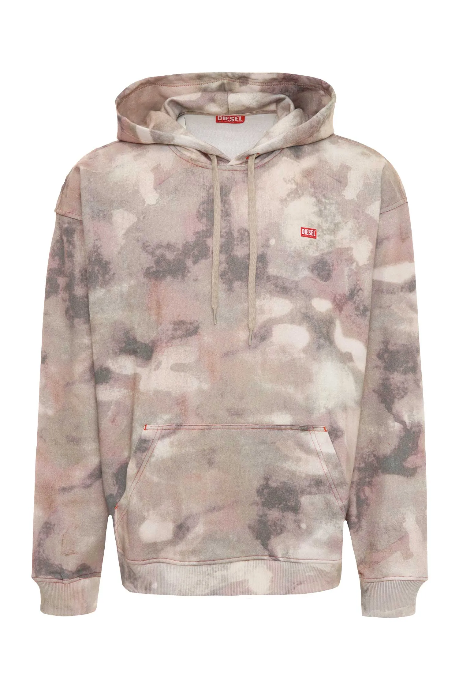 DIESEL ХУДИ РОЗОВО-СЕРОЕ, ПРИНТ КАМУФЛЯЖ, НА ГРУДИ МАЛЕНЬКОЕ КРАСНОЕ ЛОГО, СПЕРЕДИ НАКЛАДНОЙ КАРМАН