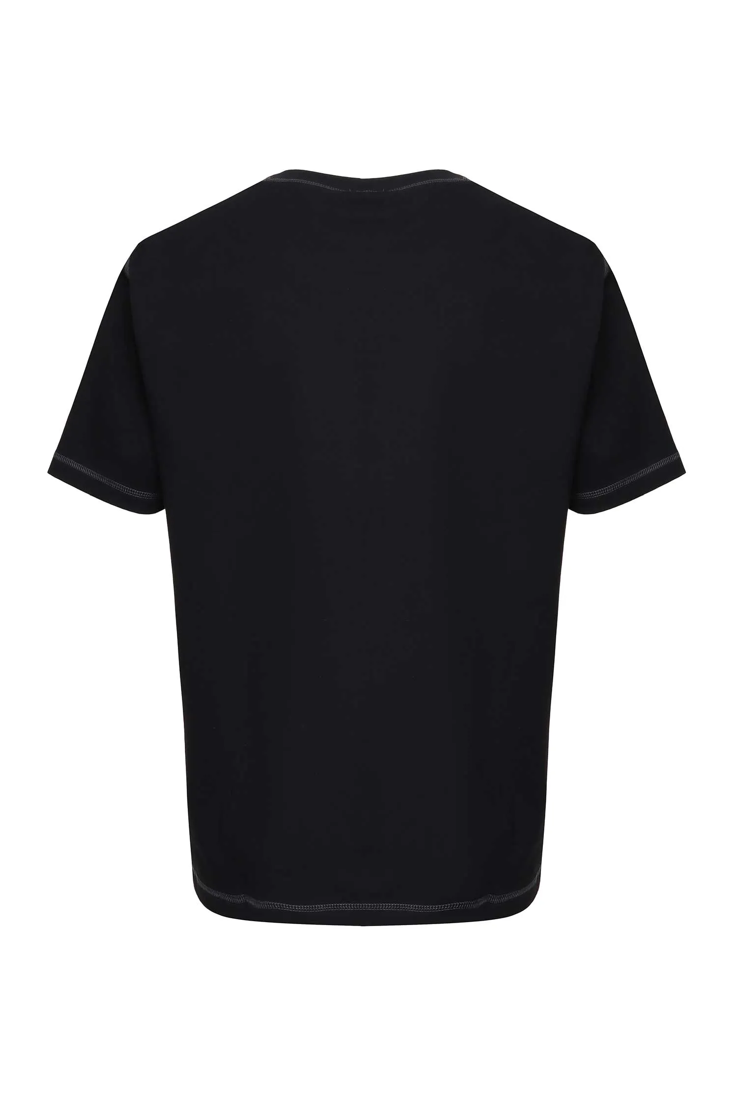 ФУТБОЛКА M.19963 ЧЁРНАЯ, НА ГРУДИ МАЛЕНЬКОЕ МЕТАЛЛ.ЛОГО, ШВЫ НАРУЖУ