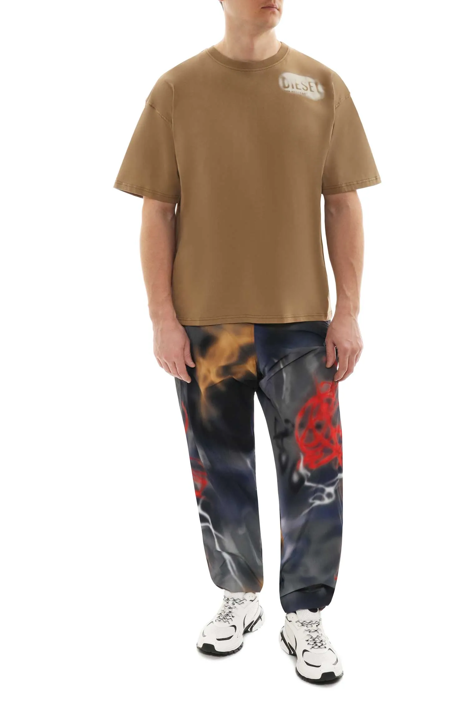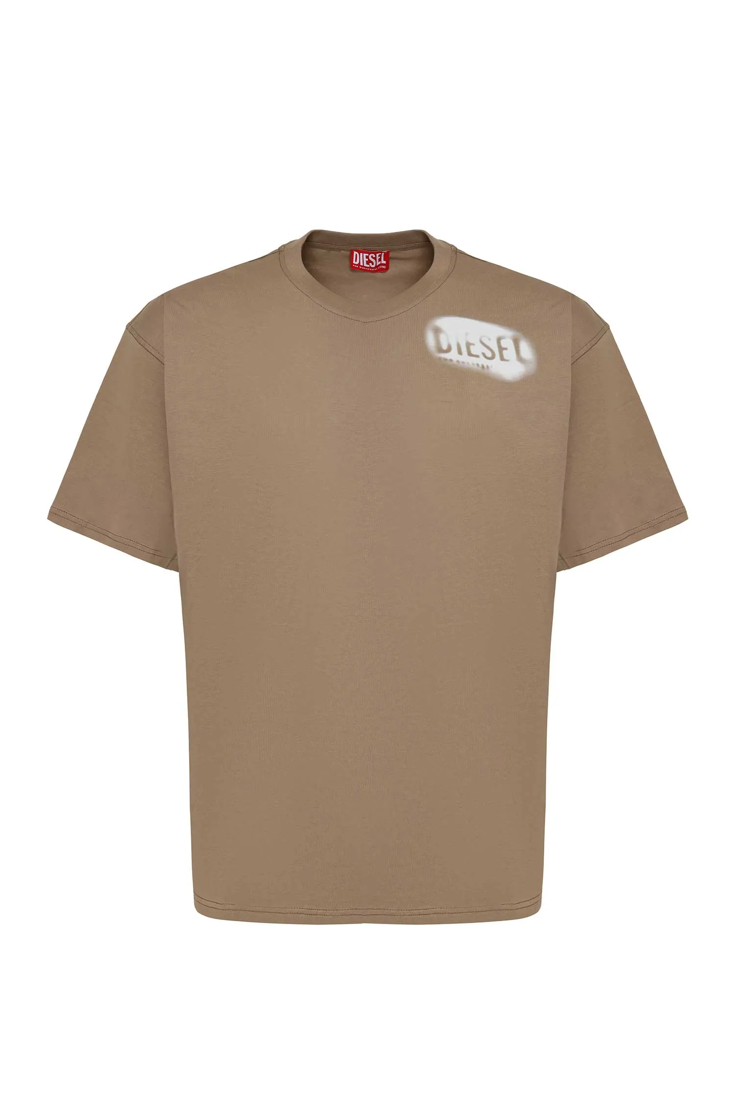 ФУТБОЛКА БЕЖЕВАЯ, НА ГРУДИ БЕЛОЕ ЛОГО-ГРАФФИТИ