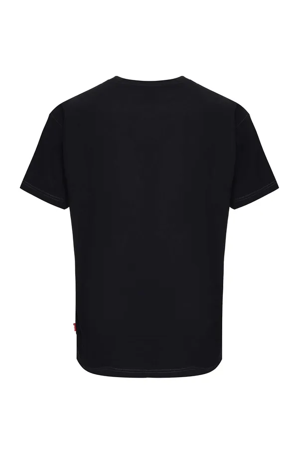 ФУТБОЛКА M.19995 ЧЁРНАЯ, ПРИНТОВАННАЯ, НА ГРУДИ ЛОГО-НАДПИСЬ В ТОН