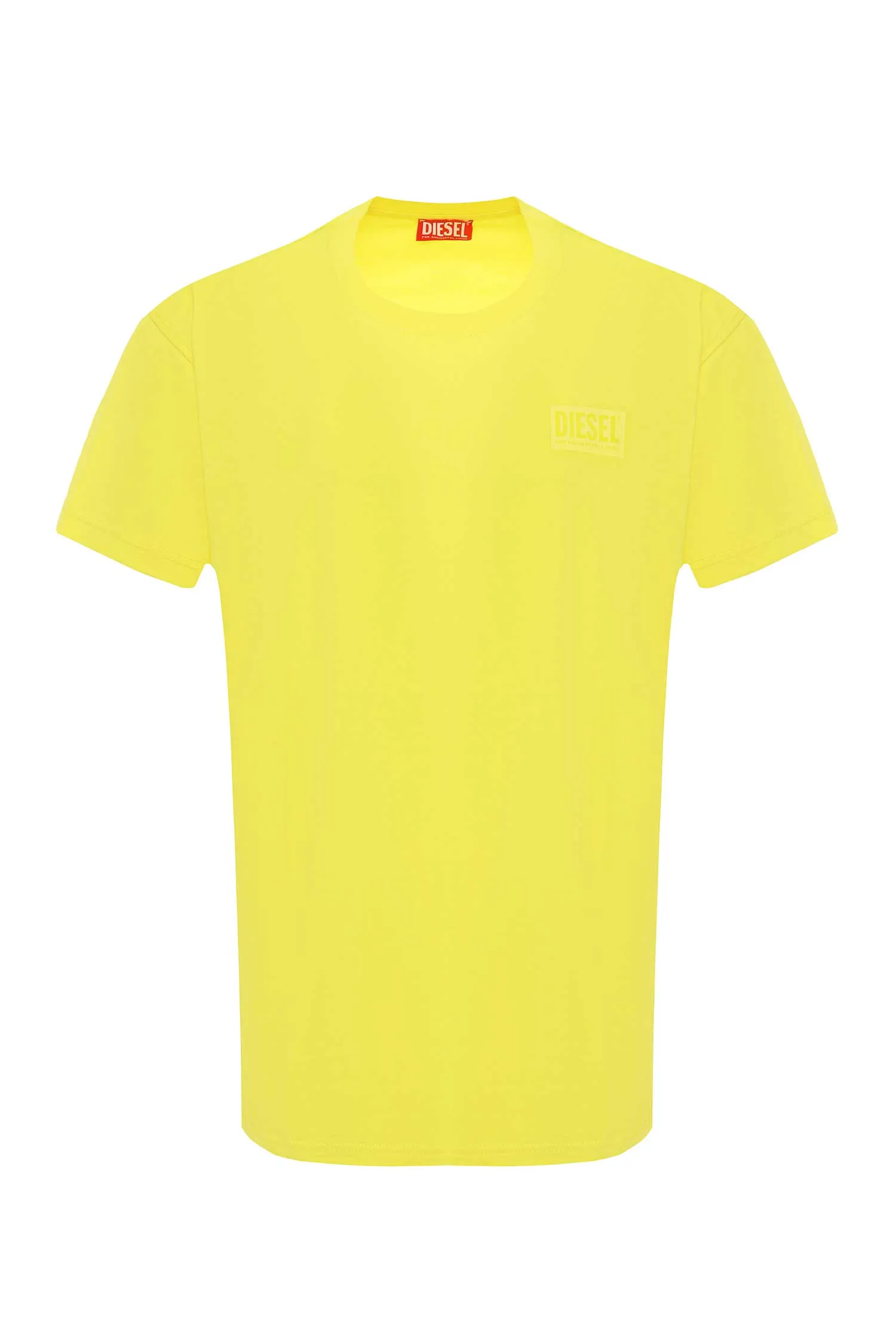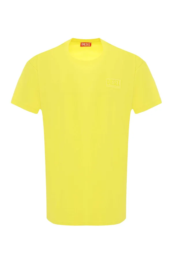 DIESEL ФУТБОЛКА ЖЁЛТАЯ, НА ГРУДИ ПРЯМОУГОЛЬНОЕ ЛОГО В ТОН