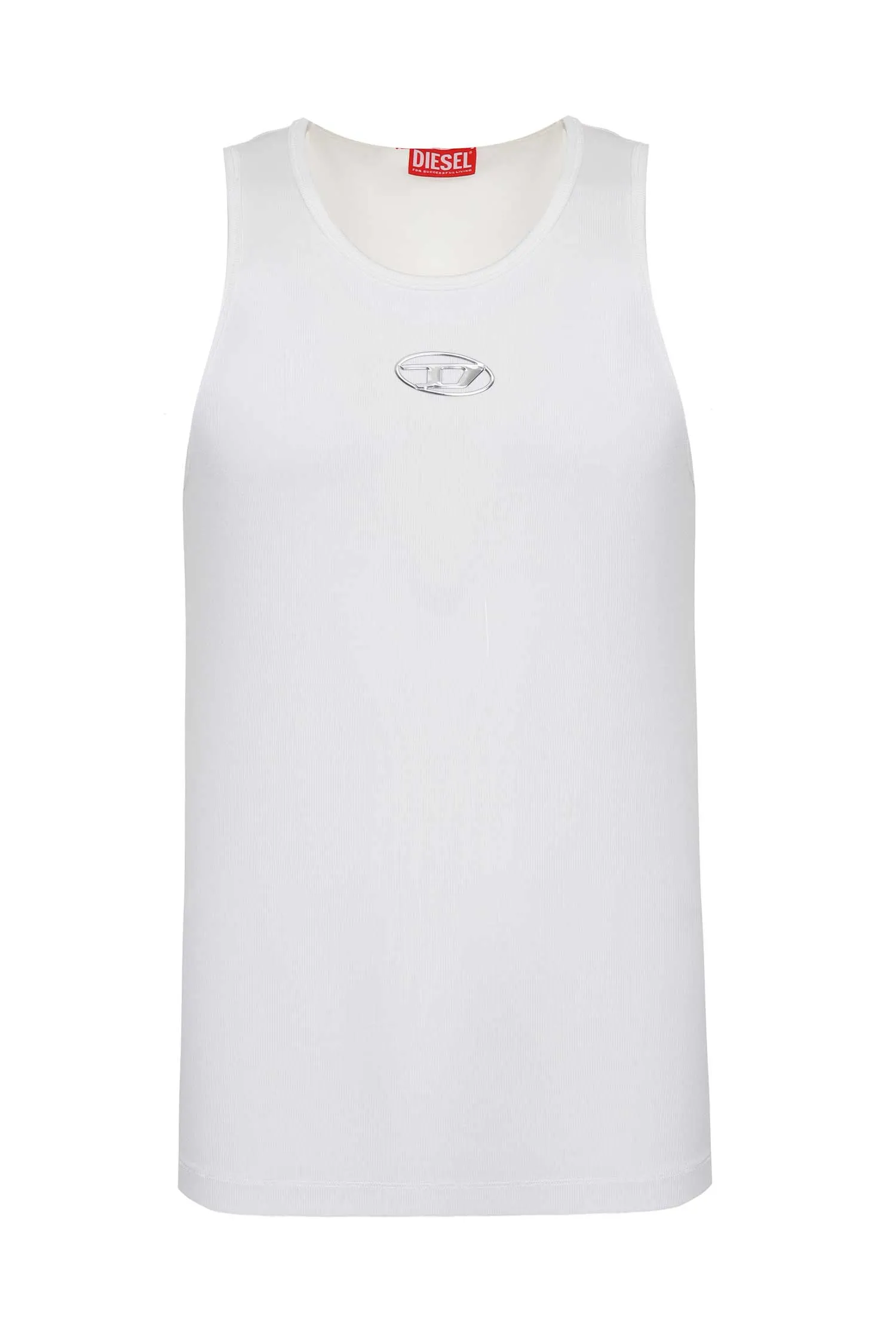 DIESEL МАЙКА M.21742 БЕЛАЯ ЛАПША, НА ГРУДИ СЕРЕБРИСТОЕ ЛОГО, ШВЫ НАРУЖУ