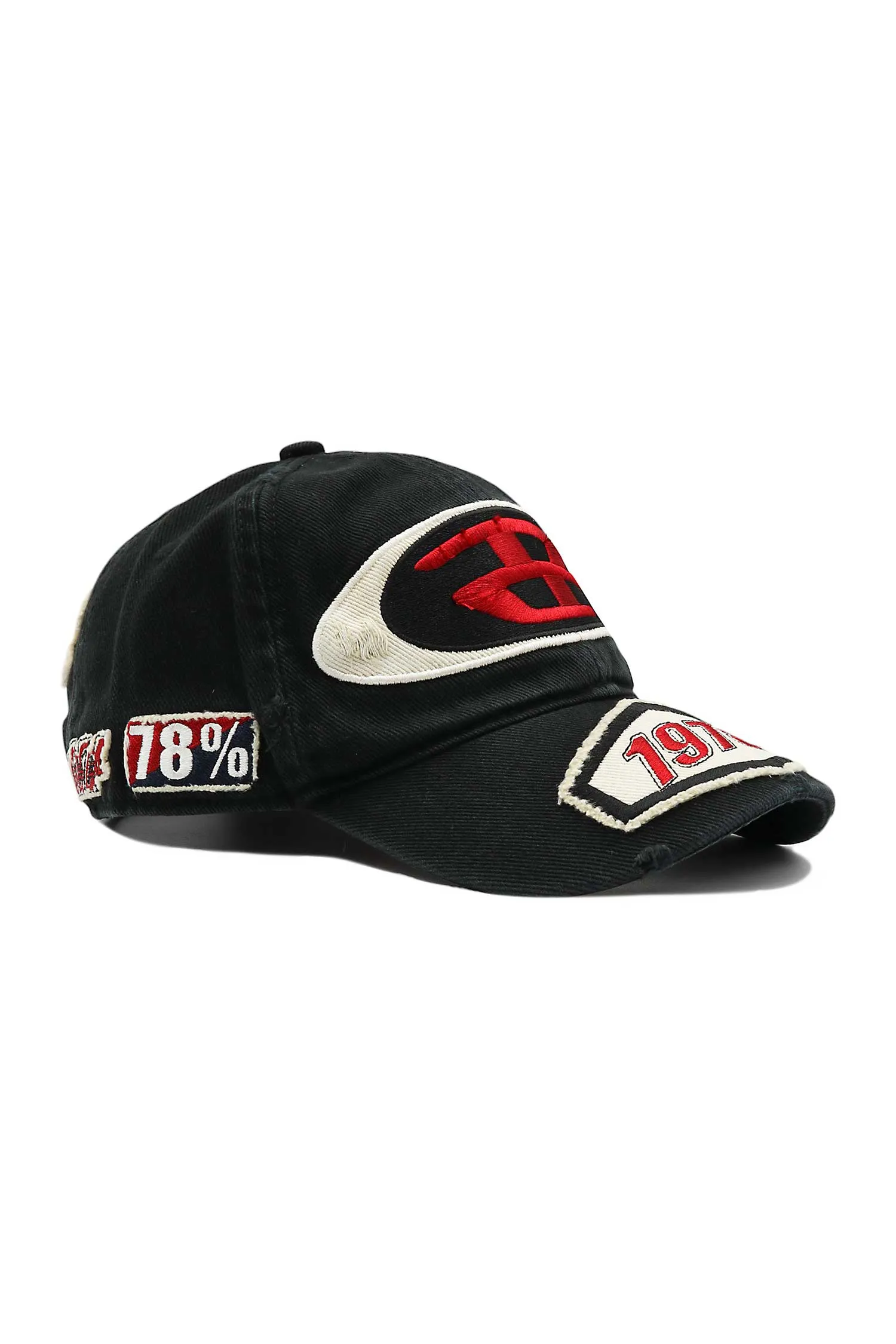 БЕЙСБОЛКА ЧЁРНАЯ, МОЛОЧНО-КРАСНЫЕ НАШИВКИ, СЗАДИ НАШИВКА-ЛОГО