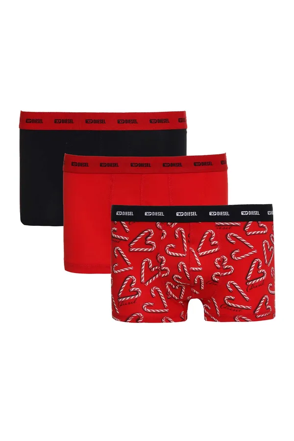 КОМПЛЕКТ ИЗ 3-Х ПАР БОКСЕРОВ КРАСНЫЙ/ЧЁРНЫЙ/КРАСНЫЙ С ПРИНТОМ, ЛОГО-НАДПИСЬ НА РЕЗИНКЕ