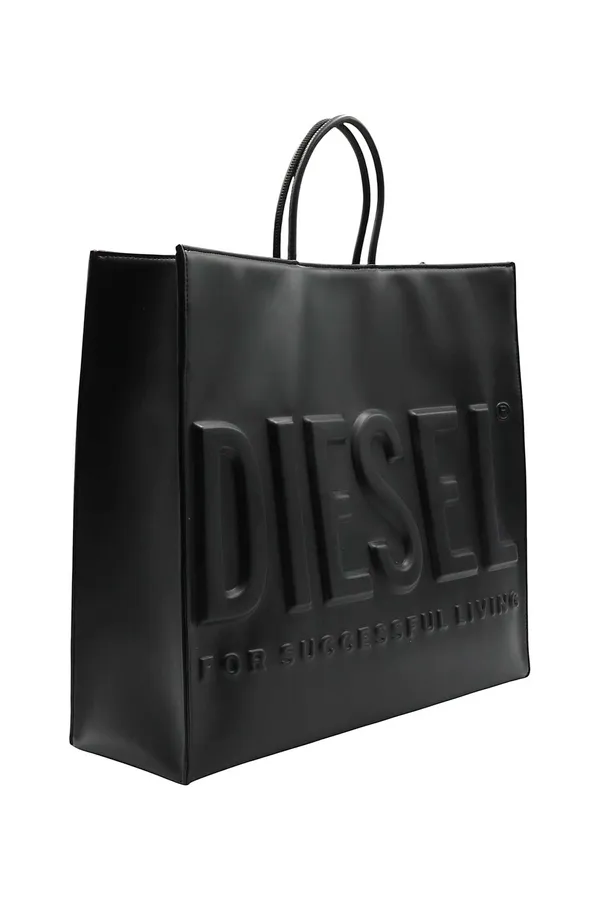 СУМКА-ШОПЕР DSL 3D SHOPPER EW X ЧЁРНАЯ ИЗ ЭКОКОЖИ, СБОКУ ОБЪЁМНАЯ ЛОГО-НАДПИСЬ, РУЧКИ, ТЕКСТИЛЬНЫЙ РЕМЕНЬ