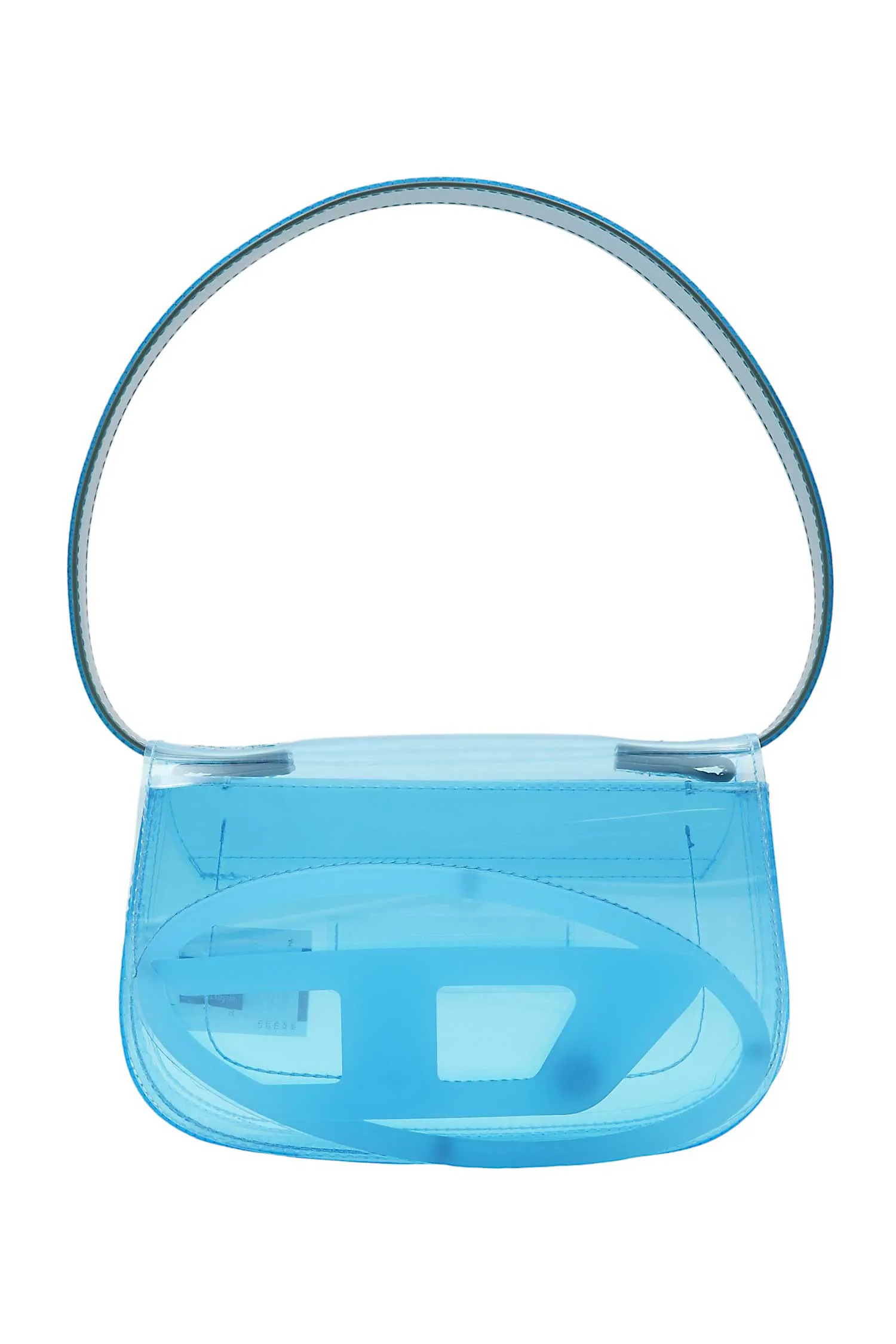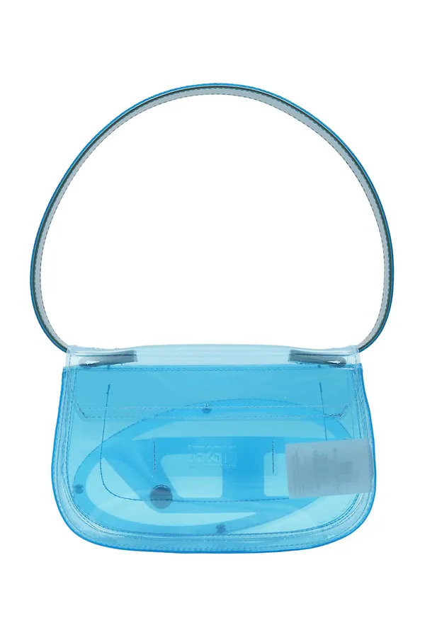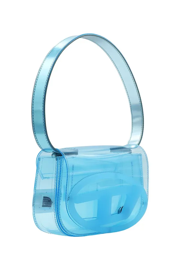 СУМКА 1DR S ГОЛУБАЯ, ПРОЗРАЧНАЯ, С КЛАПАНОМ, КРУПНОЕ ЛОГО, ЦЕПОЧКА В ТОН, РУЧКА, РЕМЕШОК
