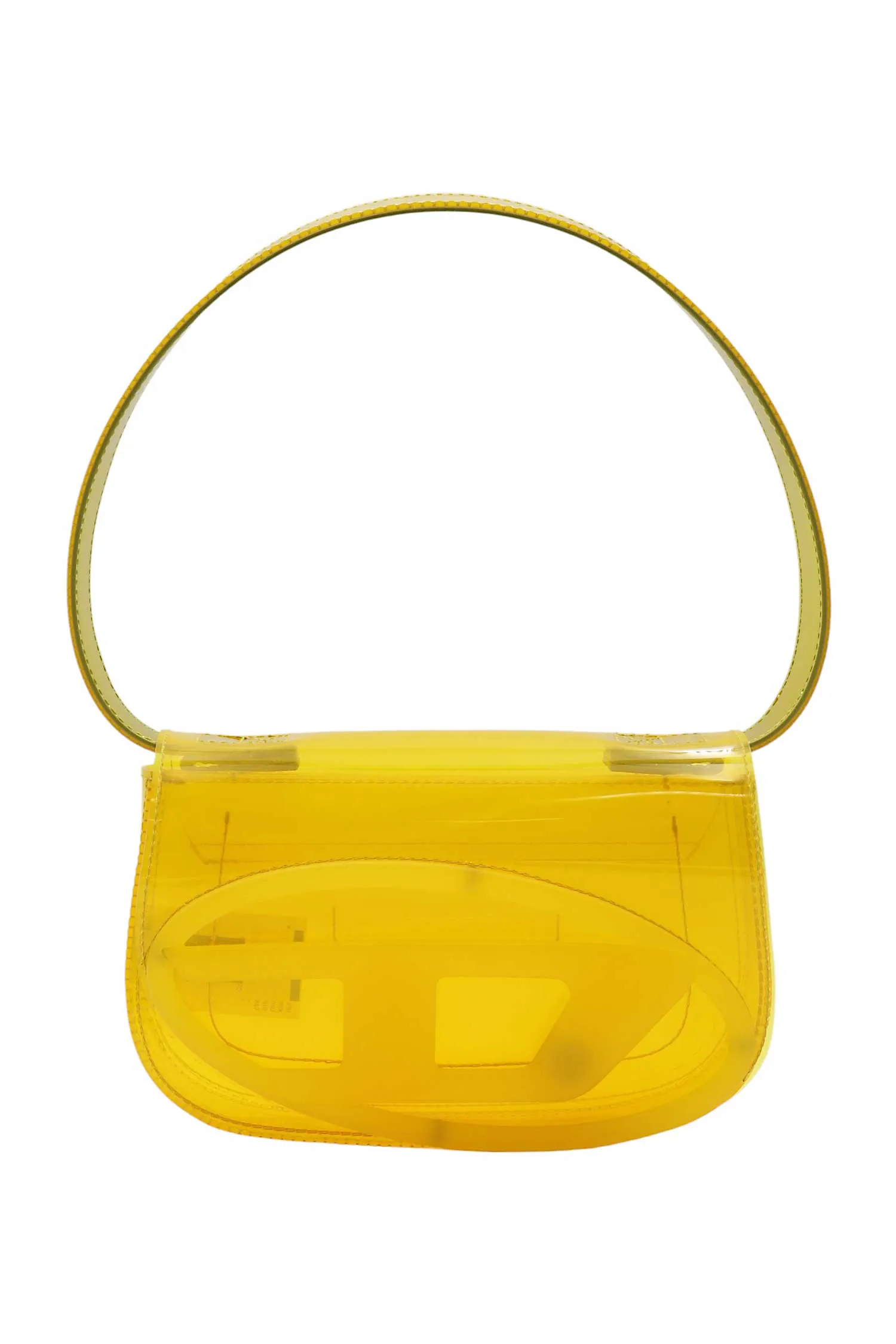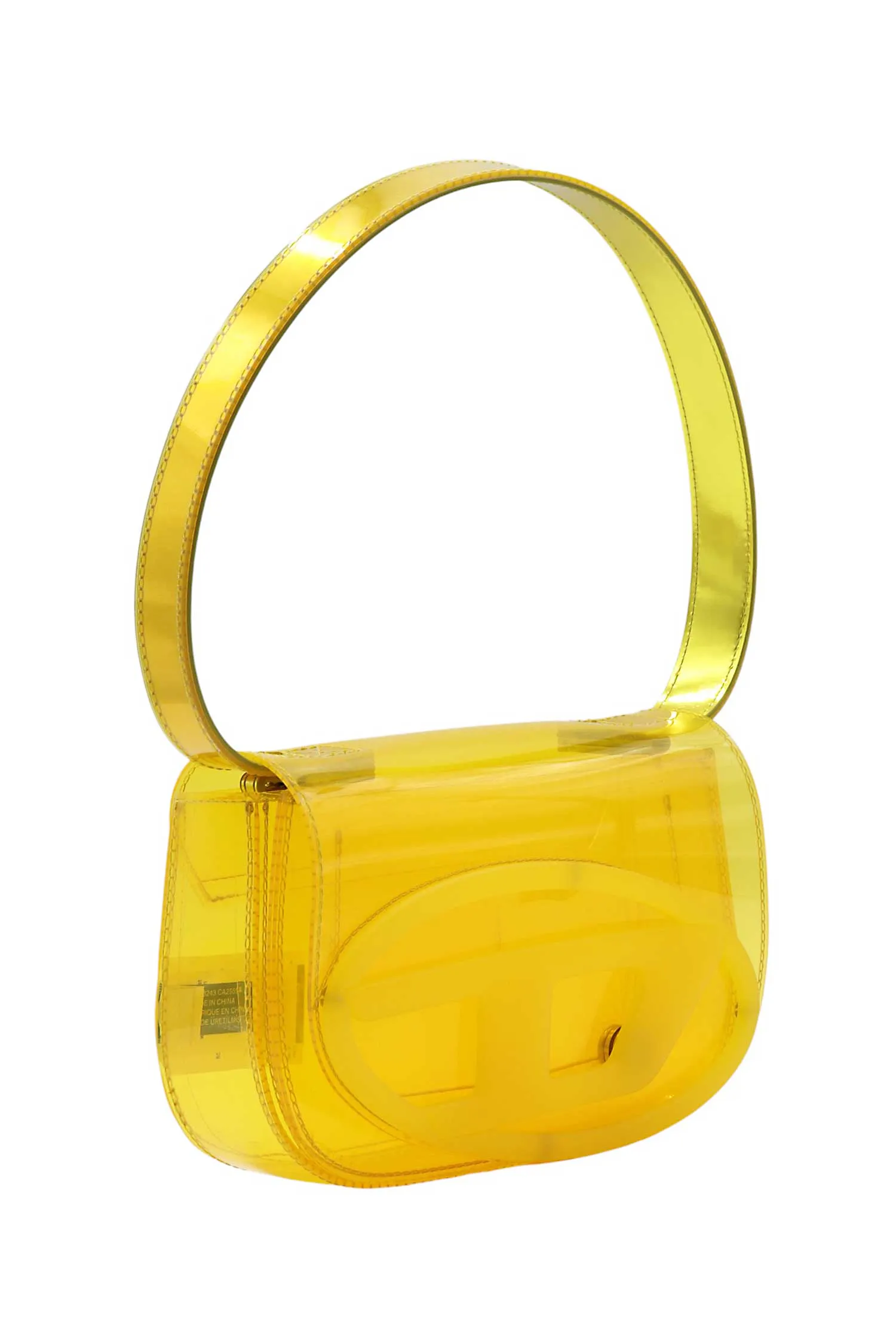 СУМКА 1DR S ЖЁЛТАЯ, ПРОЗРАЧНАЯ, С КЛАПАНОМ, КРУПНОЕ ЛОГО, ЦЕПОЧКА В ТОН, РУЧКА, РЕМЕШОК