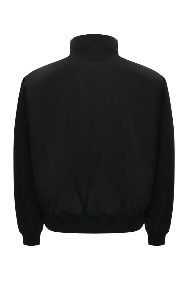 КУРТКА-ВЕТРОВКА ЧЁРНАЯ ИЗ НЕЙЛОНА, НА МОЛНИИ, НА ГРУДИ МЕТАЛЛ.ЛОГО, ТРИКОТАЖ.МАНЖЕТЫ, ВОРОТ-СТОЙКА