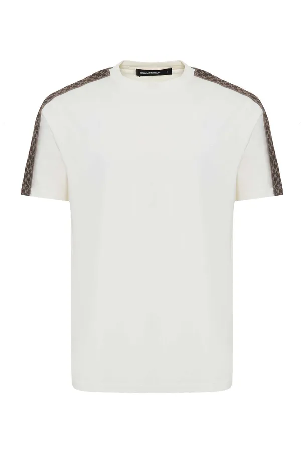 KARL LAGERFELD ФУТБОЛКА МОЛОЧНАЯ С КОРИЧНЕВЫМИ ЛАМПАСАМИ В ЛОГО