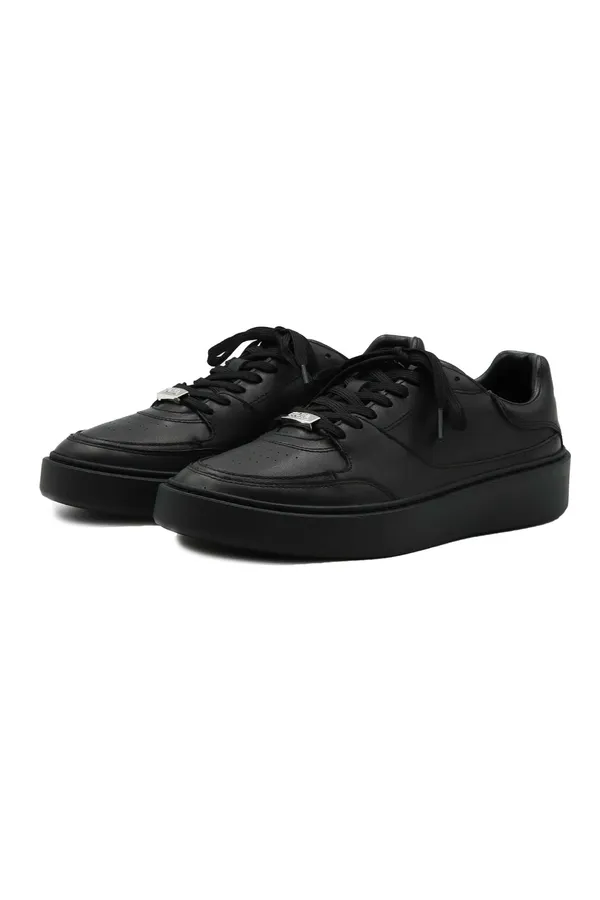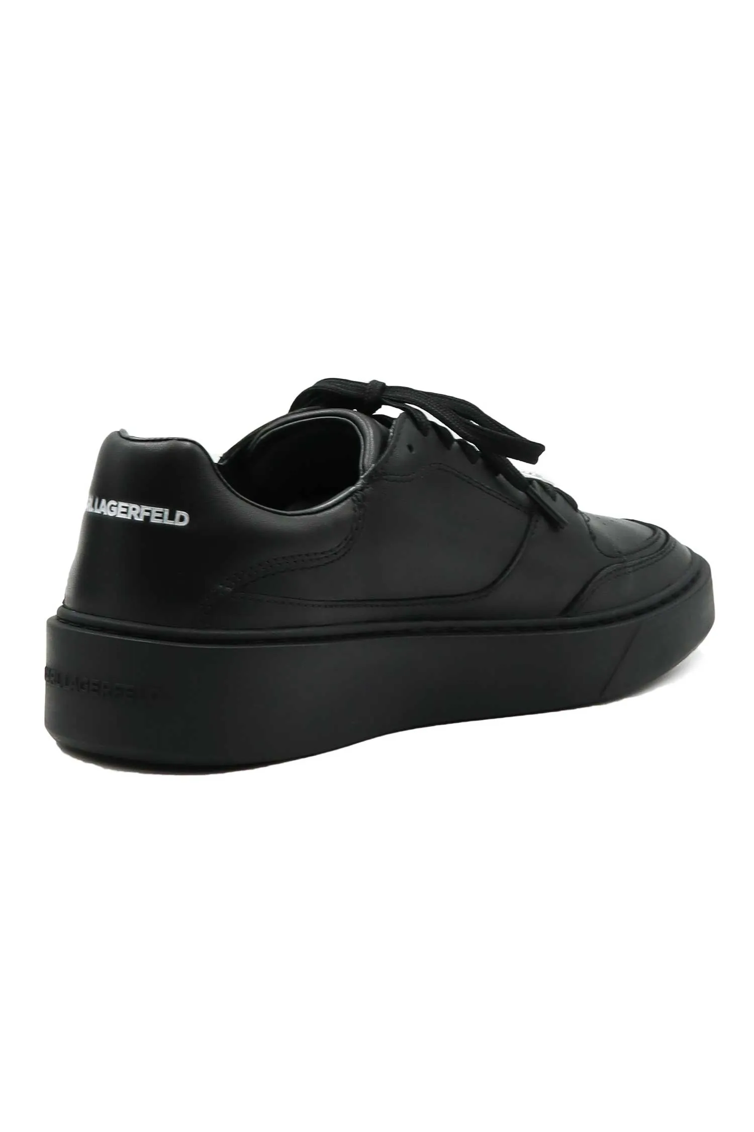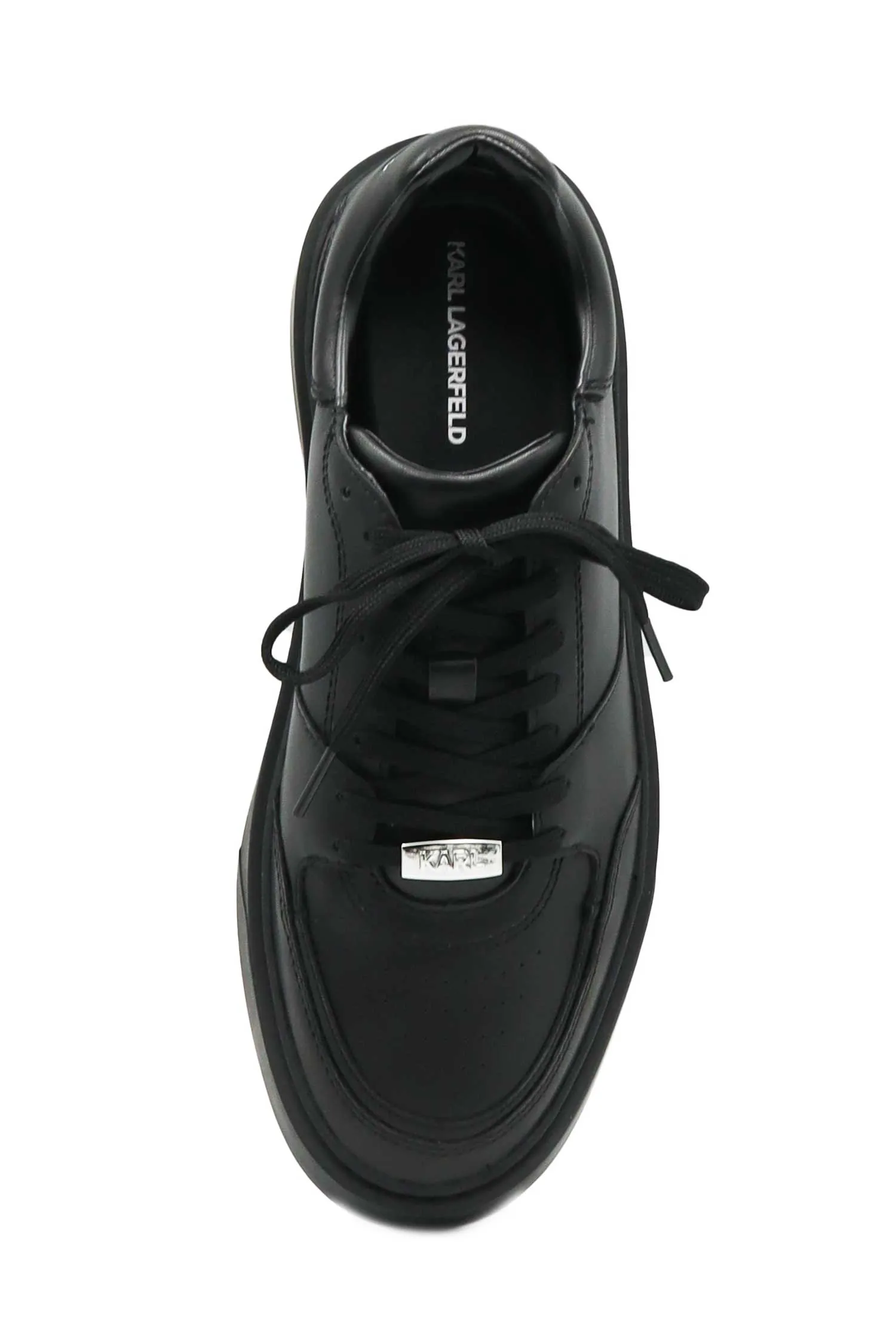 KARL LAGERFELD КЕДЫ FLINT II ЧЁРНЫЕ, КОЖАНЫЕ, НА ШНУРКАХ МЕТАЛЛ.ЛОГО, НА ПЯТКЕ СЕРЕБРИСТАЯ ЛОГО-НАДПИСЬ, К=4