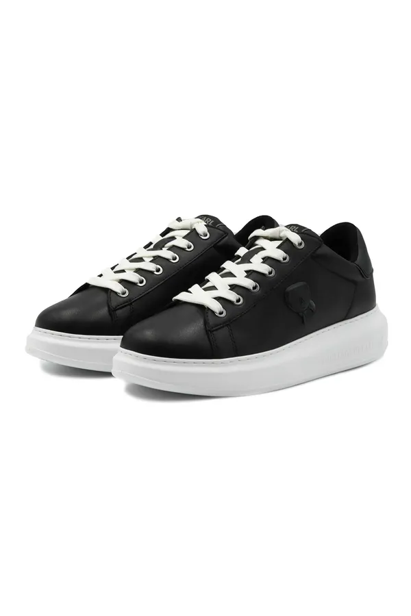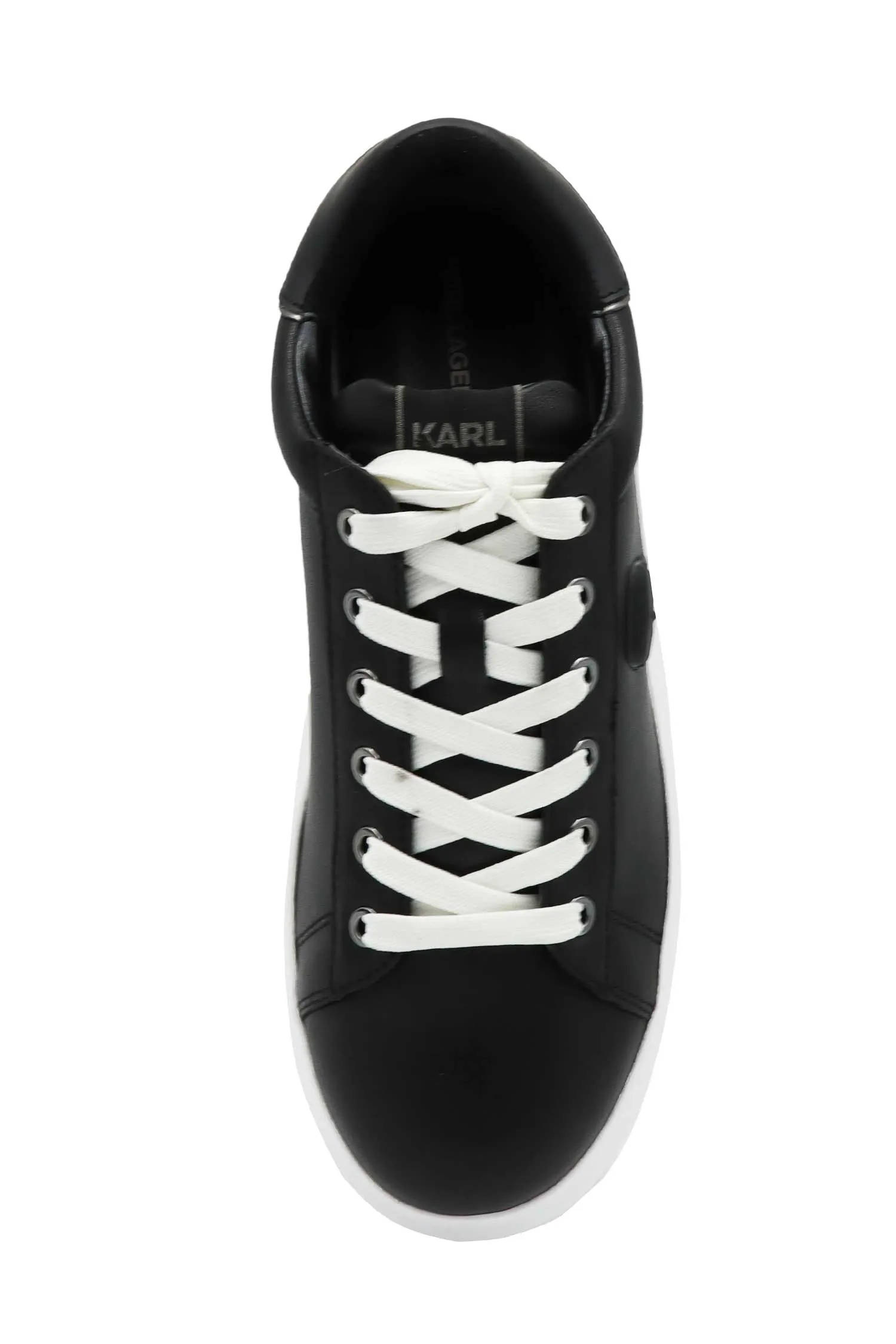 КЕДЫ KAPRI ЧЁРНЫЕ, КОЖАНЫЕ, СБОКУ ПРОРЕЗИНЕН.ЛОГО KARL В ТОН, БЕЛЫЕ ШНУРКИ И ПОДОШВА, К=4,5