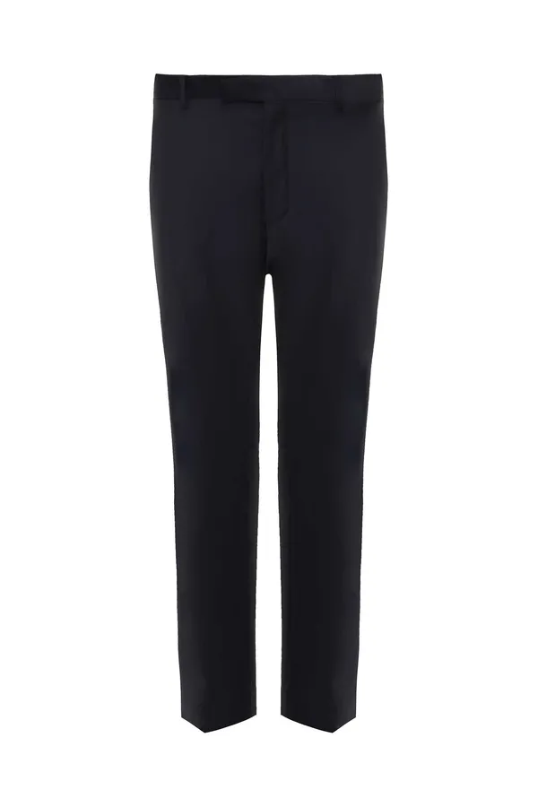 БРЮКИ Т/СИНИЕ ШЕРСТЬ, СЗАДИ ПРОРЕЗНЫЕ КАРМАНЫ НА ПУГОВИЦАХ