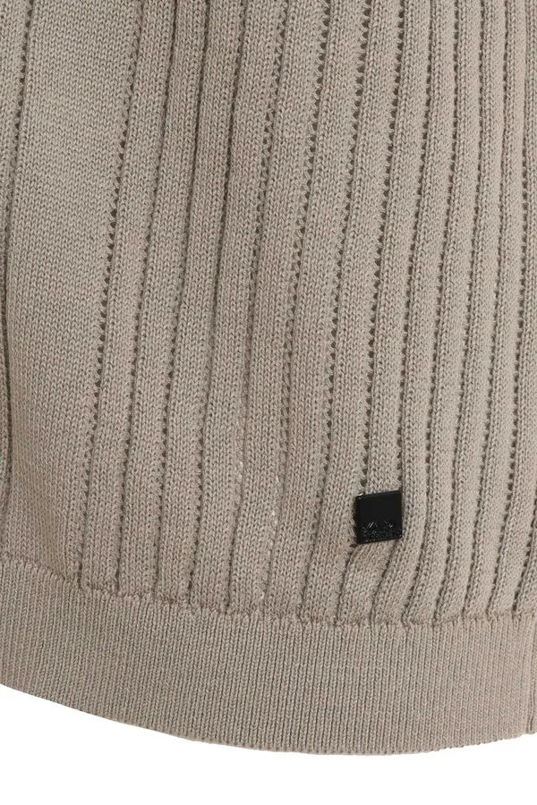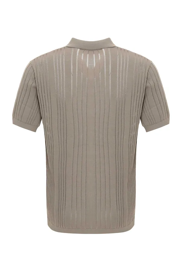 ДЖЕМПЕР-ПОЛО M.016 БЕЖЕВО-КОРИЧНЕВАЯ, ВЫВЯЗАННЫЕ ПОЛОСЫ, СНИЗУ ЧЁРНОЕ МЕТАЛЛ.ЛОГО, К/РУК.