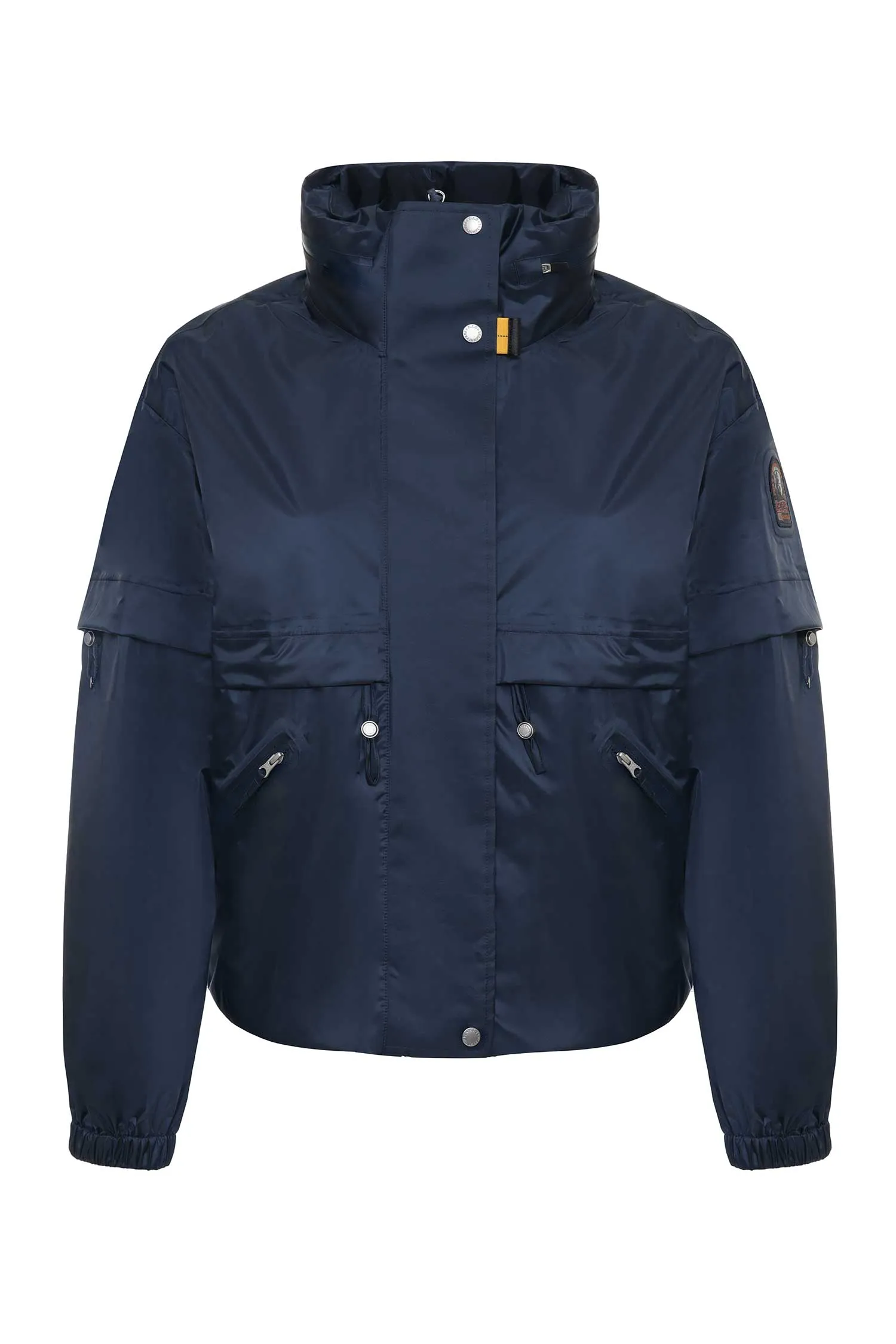ВЕТРОВКА KASANE 673 Т/СИНЯЯ, УКОРОЧЕННАЯ, КОКЕТКА, КУЛИСКА НА РУКАВАХ, ВОРОТ-СТОЙКА, КАПЮШОН