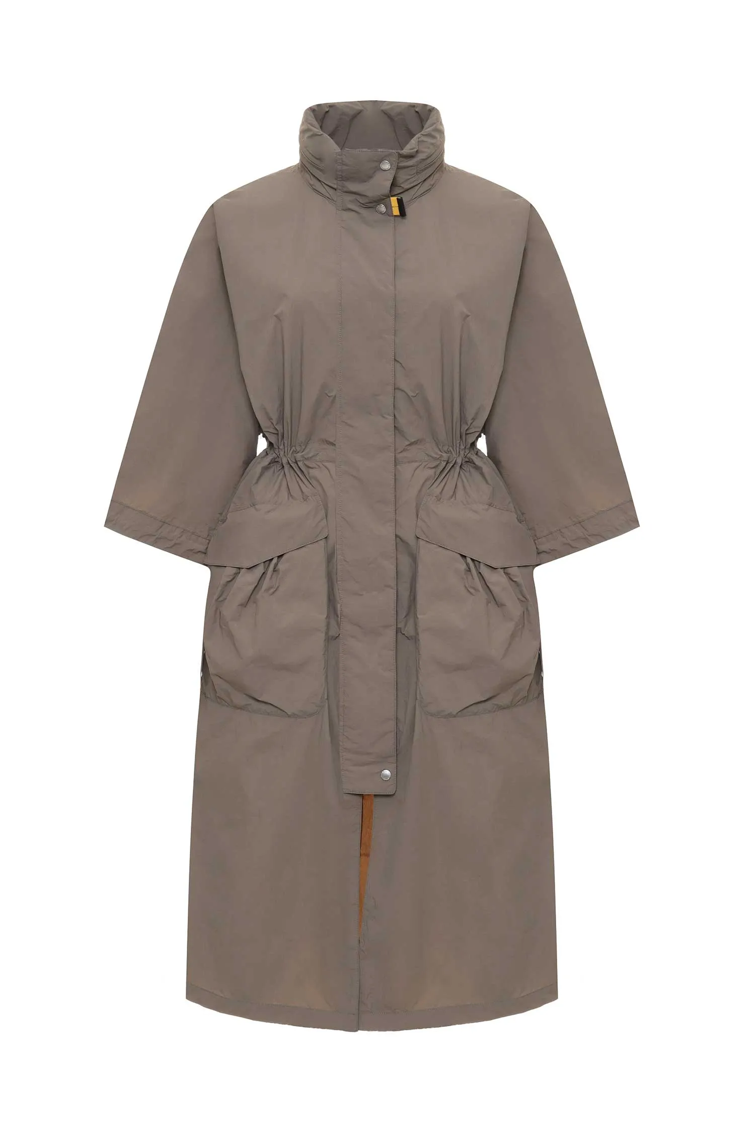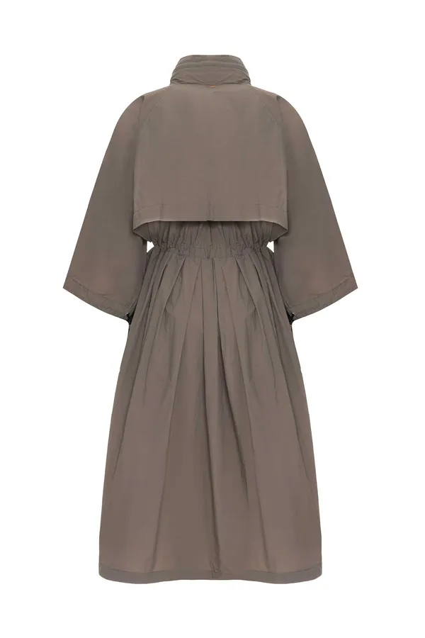 ПЛАЩ KOTONE 280 ОЛИВКОВО-КОРИЧНЕВЫЙ ИЗ НЕЙЛОНА, ВЕТРОЗАЩИТНАЯ ПЛАНКА, ОБЪЁМНЫЕ КАРМАНЫ С КЛАПАНОМ, ВОРОТ-СТОЙКА, КАПЮШОН