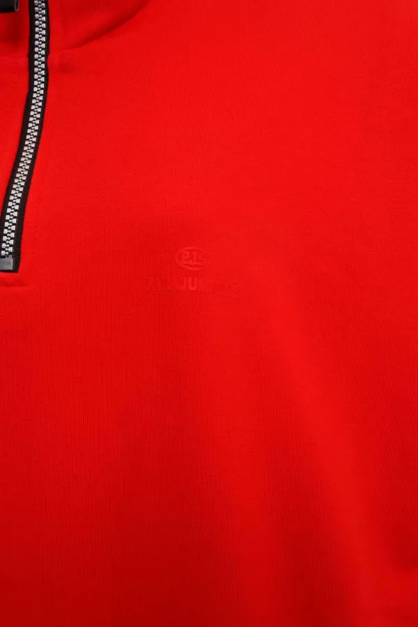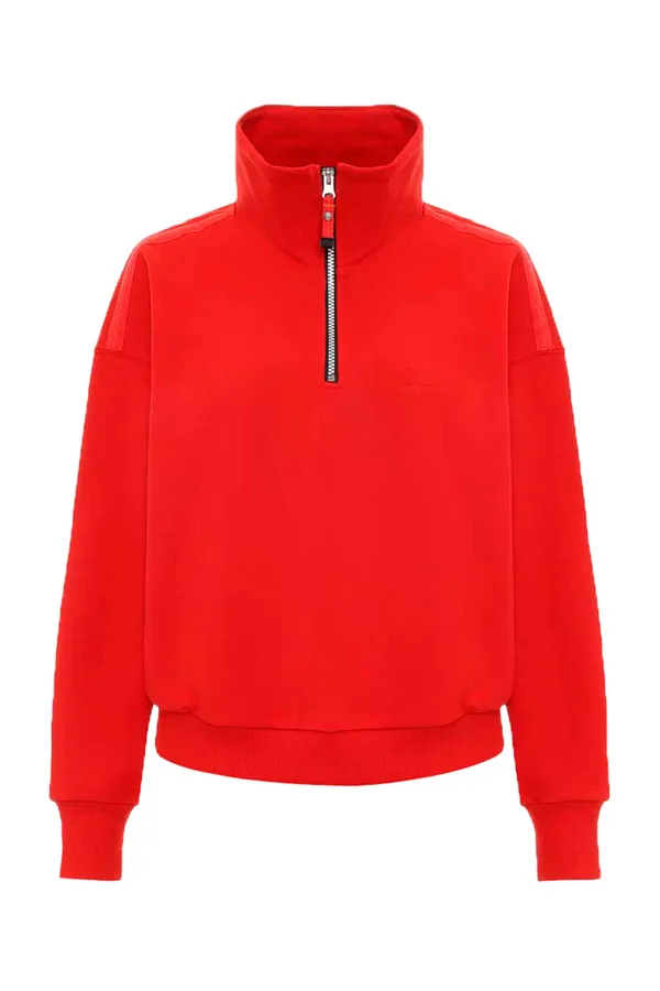 СВИТШОТ ZENDAYA 288 КРАСНЫЙ, УКОРОЧЕННЫЙ, НА ГРУДИ МАЛЕНЬКАЯ ЛОГО-НАДПИСЬ В ТОН, ВОРОТ-СТОЙКА НА МОЛНИИ