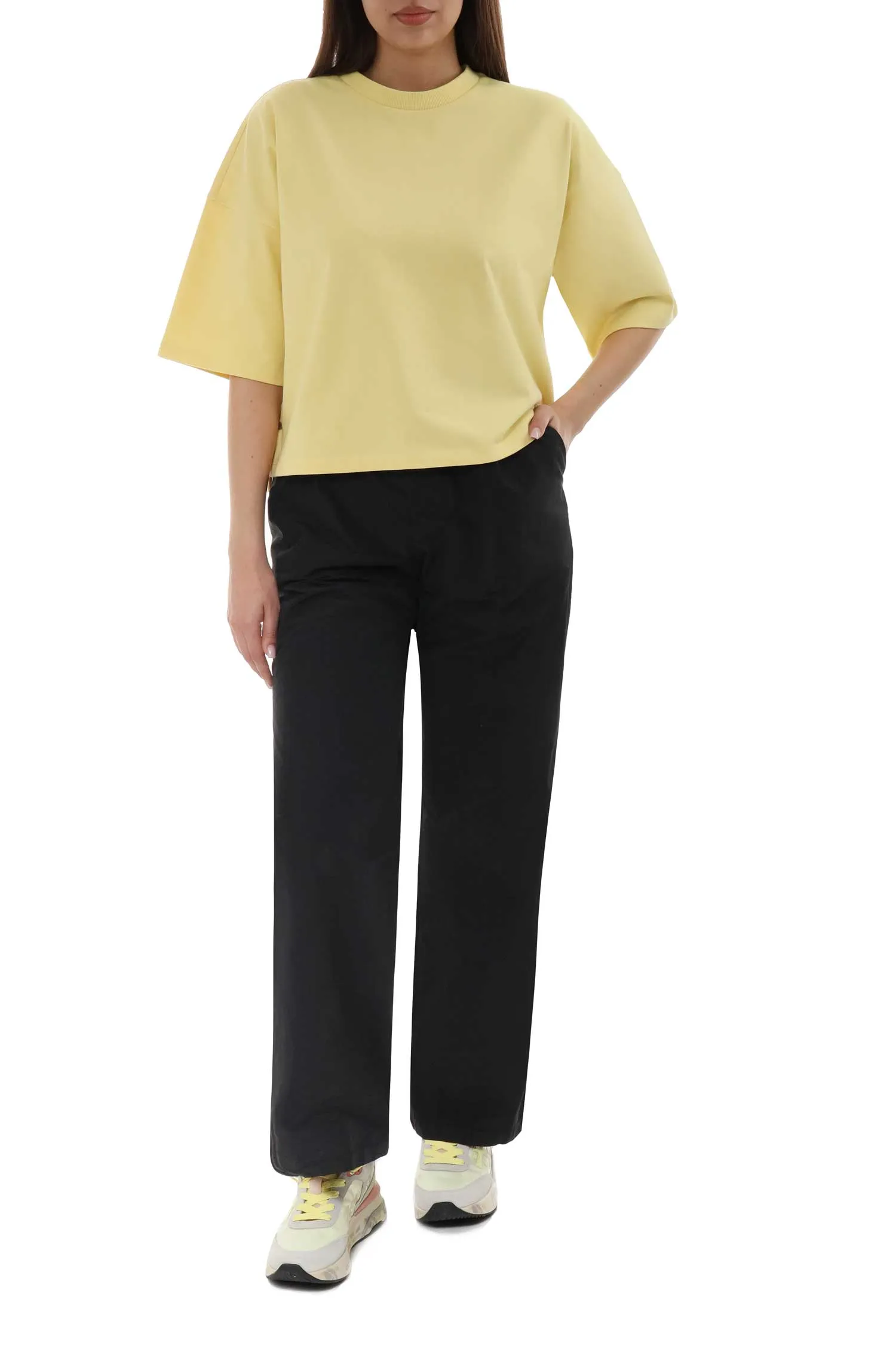 ФУТБОЛКА ROZANNE TEE 282 ЖЁЛТАЯ, УКОРОЧЕННАЯ, ПЛОТНАЯ, СНИЗУ МАЛЕНЬКАЯ НАШИВКА-ЛОГО В ТОН