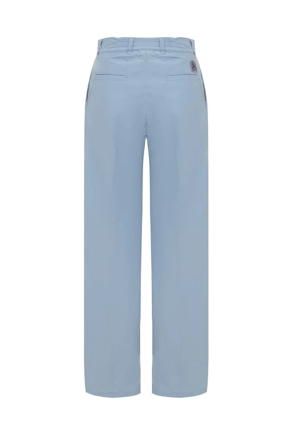 БРЮКИ KSENIJA 786 ГОЛУБЫЕ ИЗ НЕЙЛОНА, СВОБОДНЫЕ, ТОНКИЕ, СЗАДИ ПРОРЕЗНЫЕ КАРМАНЫ И НАШИВКА-ЛОГО В ТОН