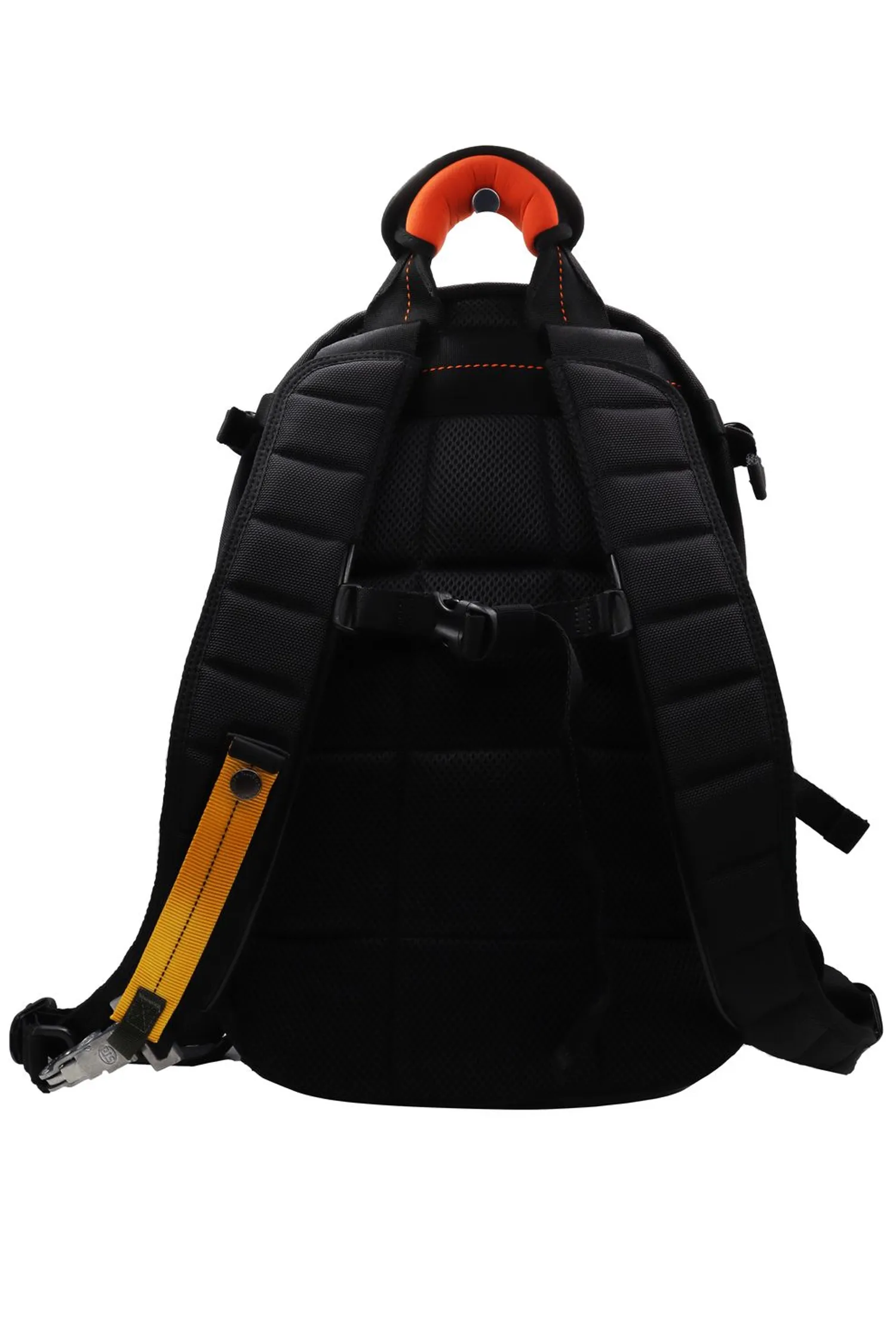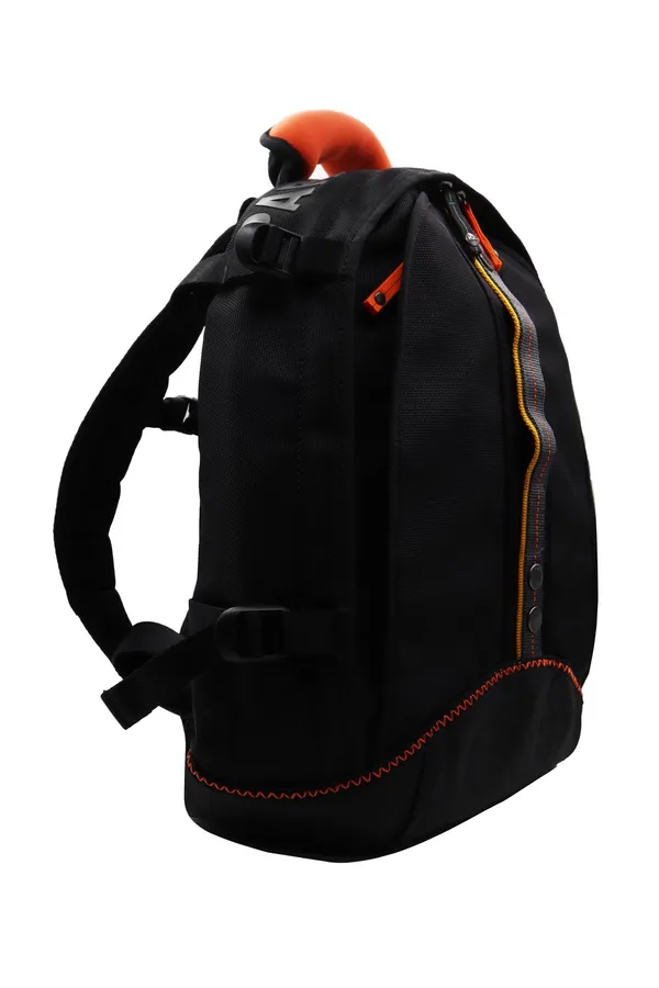 РЮКЗАК TAKU ЧЁРНЫЙ КОМБИНИР., ТЕКСТИЛЬ+ПРОРЕЗИНЕН.НИЗ, ЖЁЛТАЯ ВЕРТИК.ПОЛОСА, ОРАНЖЕВАЯ РУЧКА