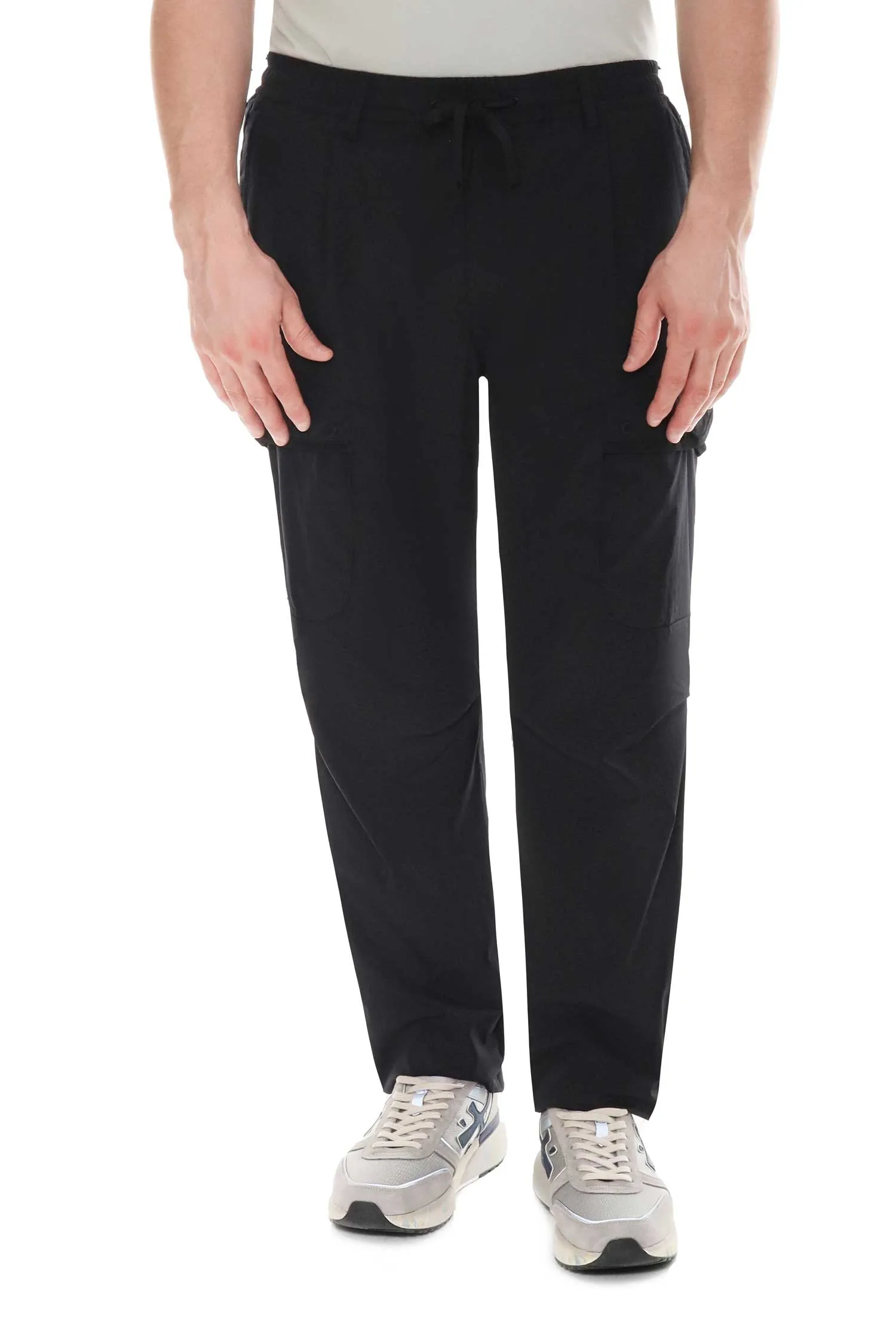БРЮКИ MALLAIG 541 ЧЁРНЫЕ, ТОНКИЕ, НА КУЛИСКЕ, СБОКУ КАРМАНЫ С КЛАПАНОМ, ОТД.ТЕСЬМОЙ В ТОН, ЗАЩИПЫ НА КОЛЕНЯХ