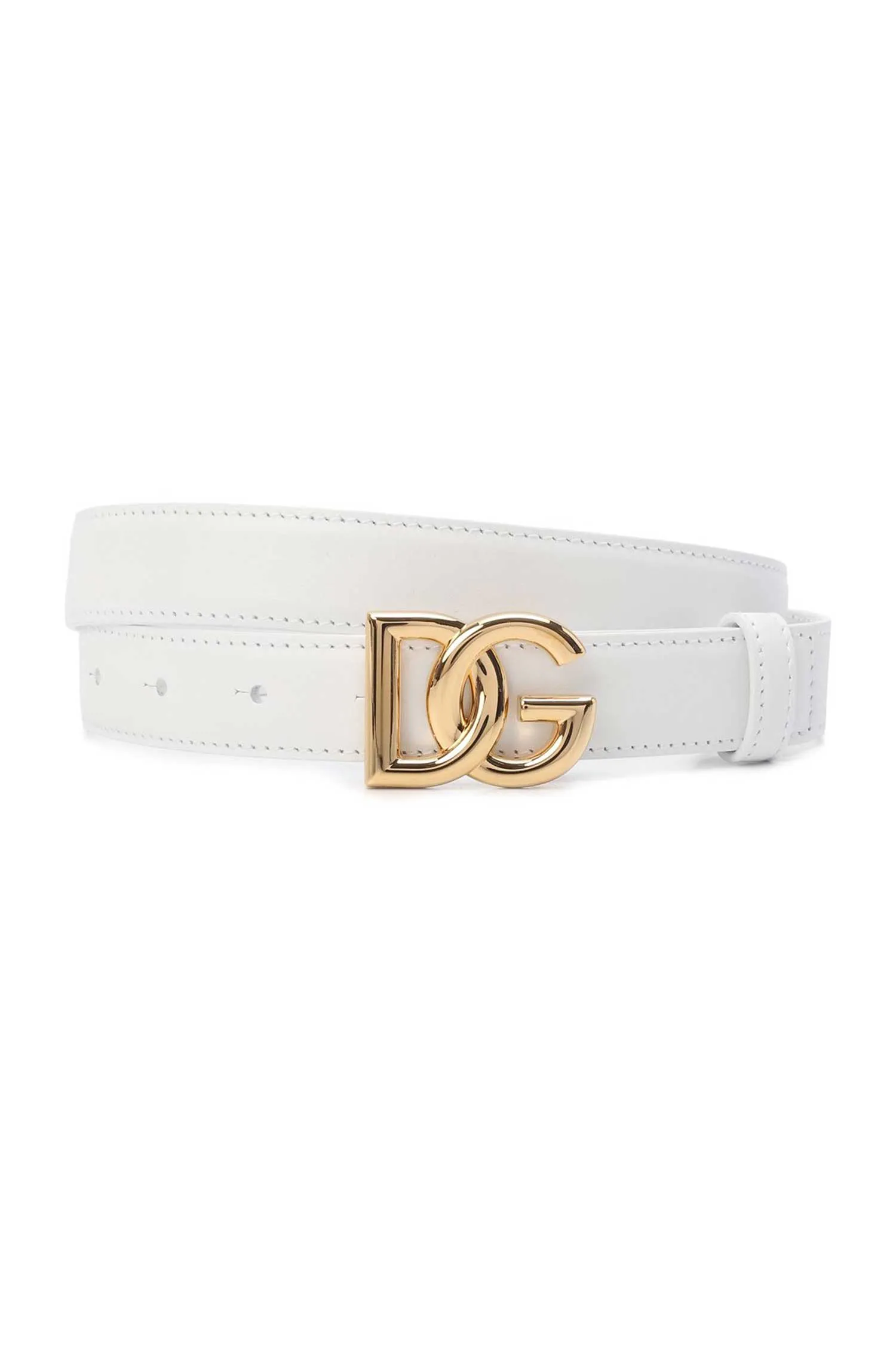 DOLCE&GABBANA РЕМЕНЬ M.1447 БЕЛЫЙ, МАТОВАЯ КОЖА, ЗОЛОТИСТАЯ ПРЯЖКА-ЛОГО DG, Ш=2,5
