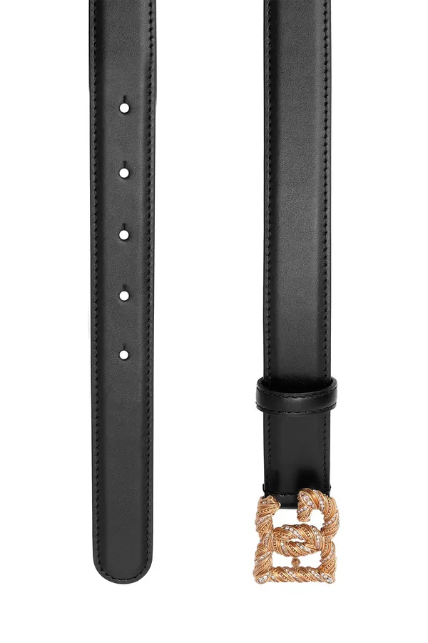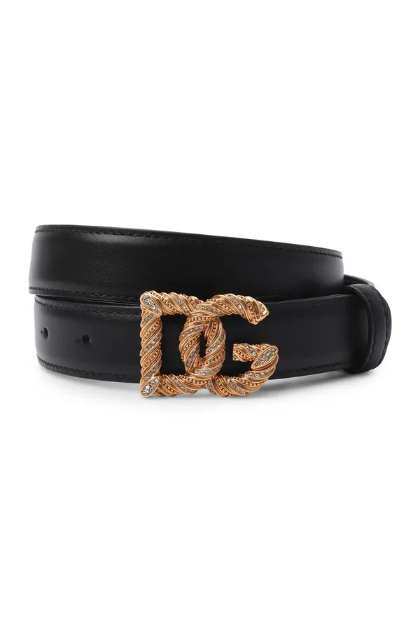 РЕМЕНЬ ЧЁРНЫЙ, МАТОВАЯ КОЖА, ВИТАЯ ЗОЛОТИСТАЯ ПРЯЖКА-ЛОГО DG СО СТРАЗАМИ, Ш=2,5
