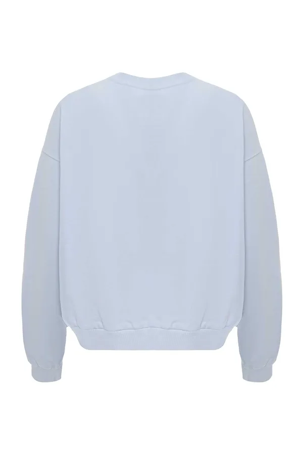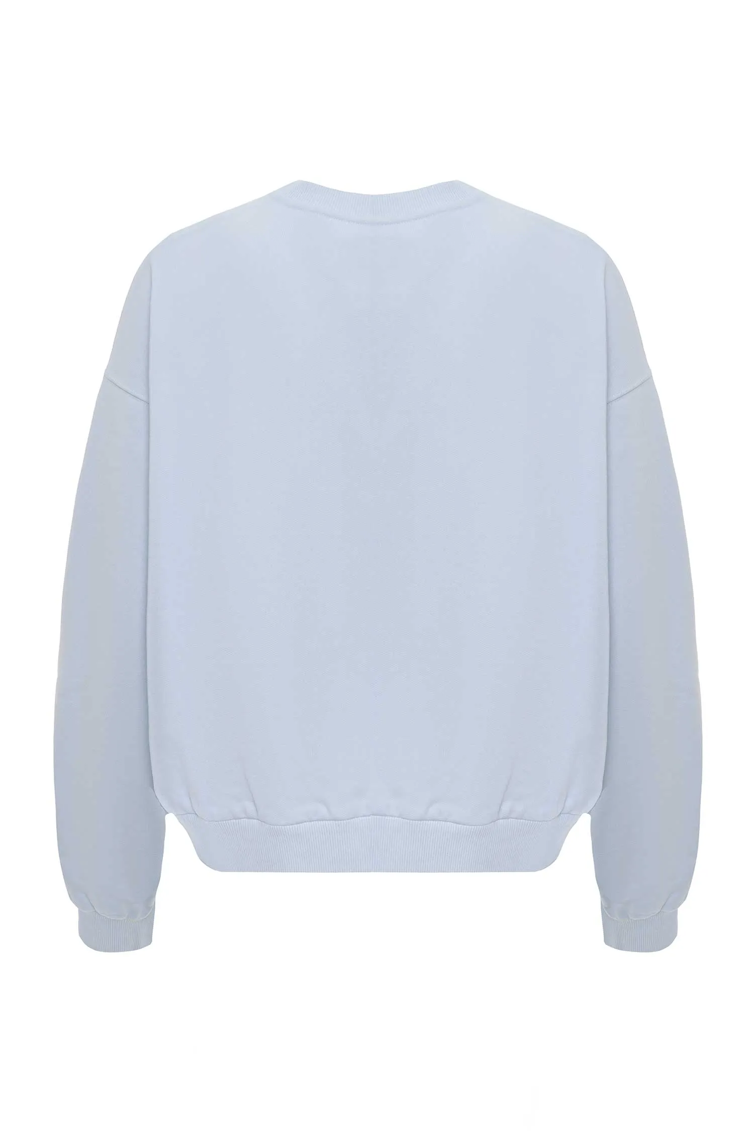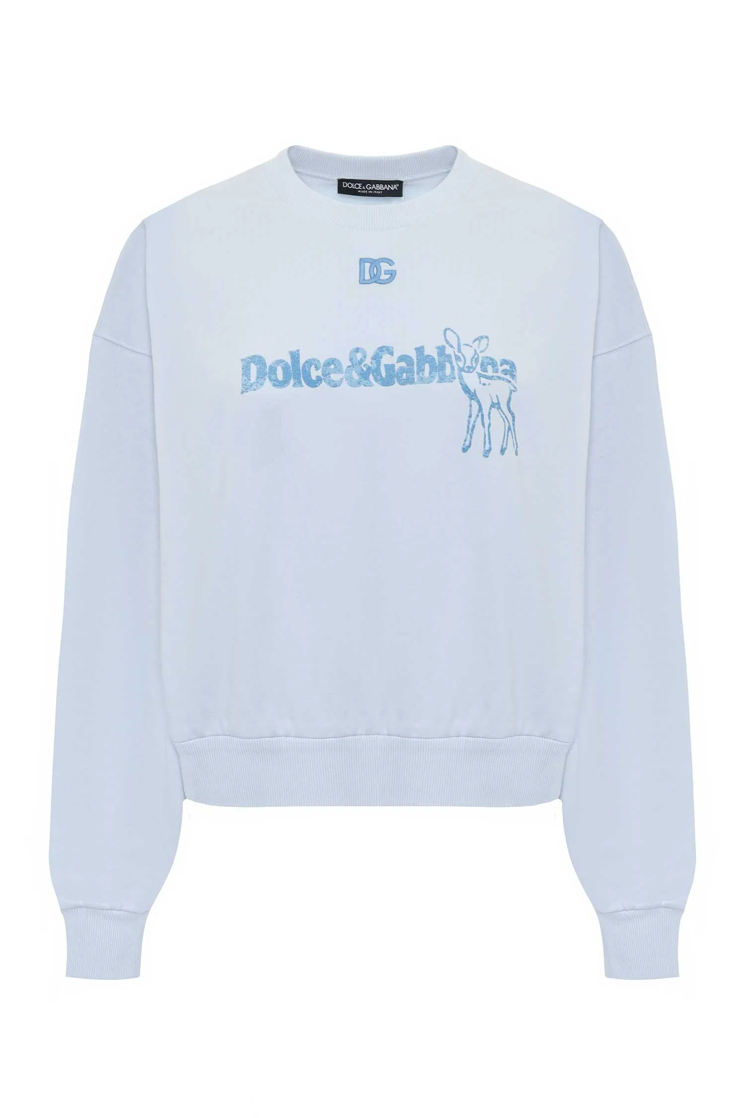 СВИТШОТ ГОЛУБОЙ, НА ГРУДИ БАРХАТНАЯ ЛОГО-НАДПИСЬ И ВЫШИТЫЕ БУКВЫ DG