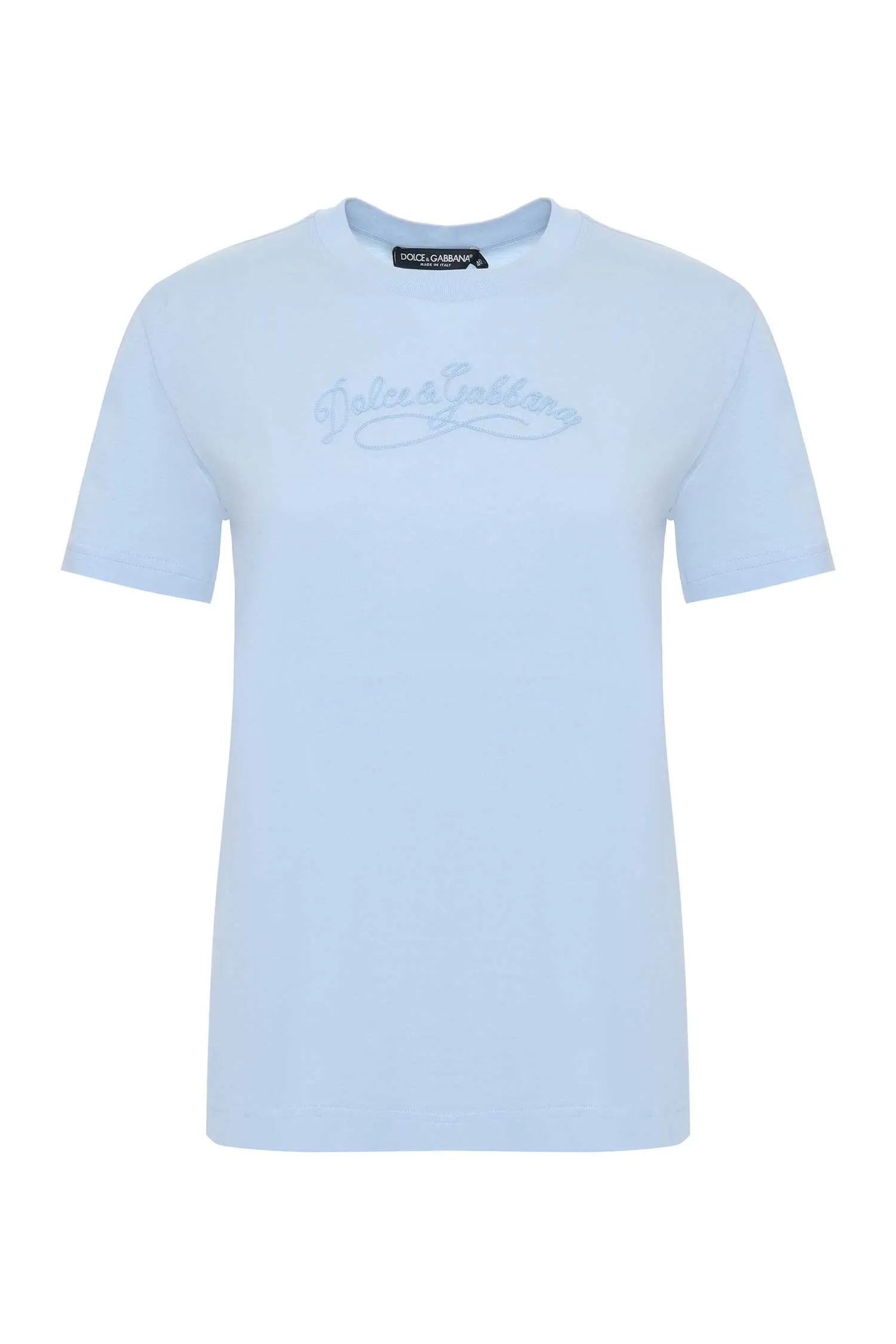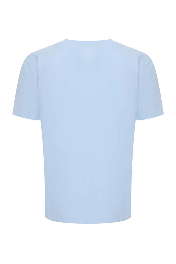 ФУТБОЛКА M.842 ГОЛУБАЯ, НА ГРУДИ ВЫШИТАЯ ЛОГО-НАДПИСЬ В ТОН
